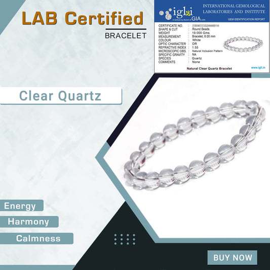 Certified Clear Quartz 8mm Natural Stone Bracelet