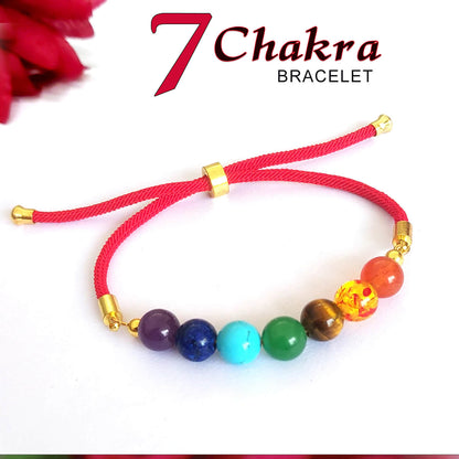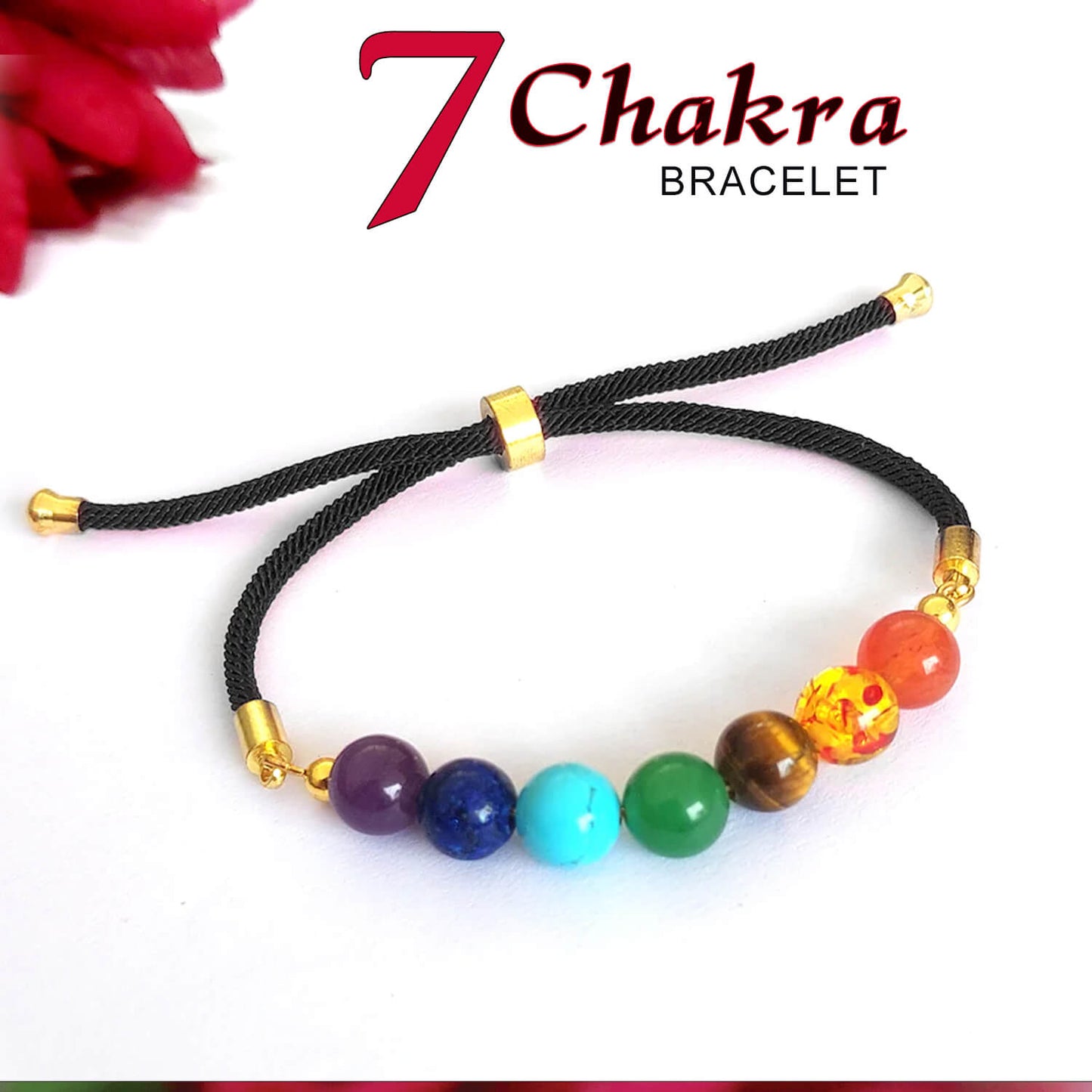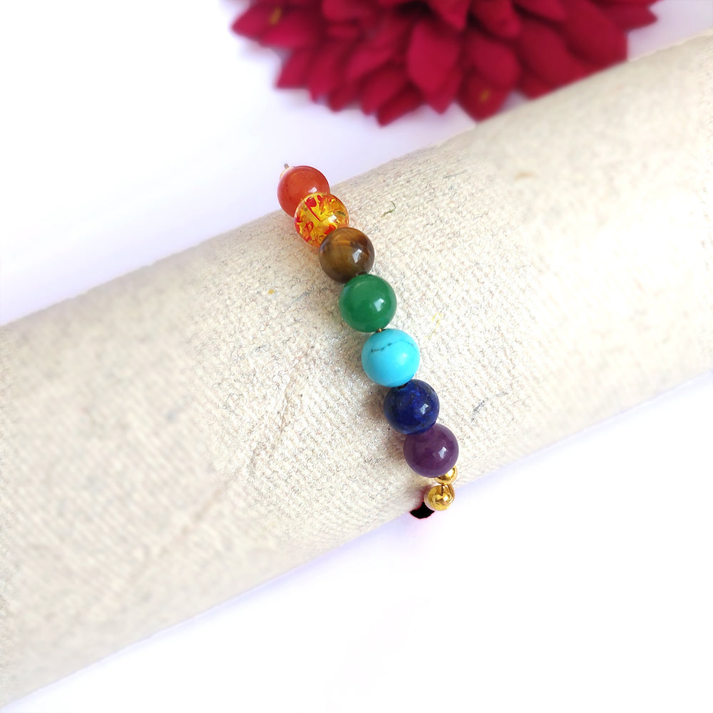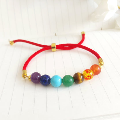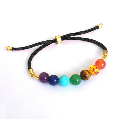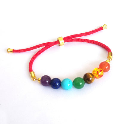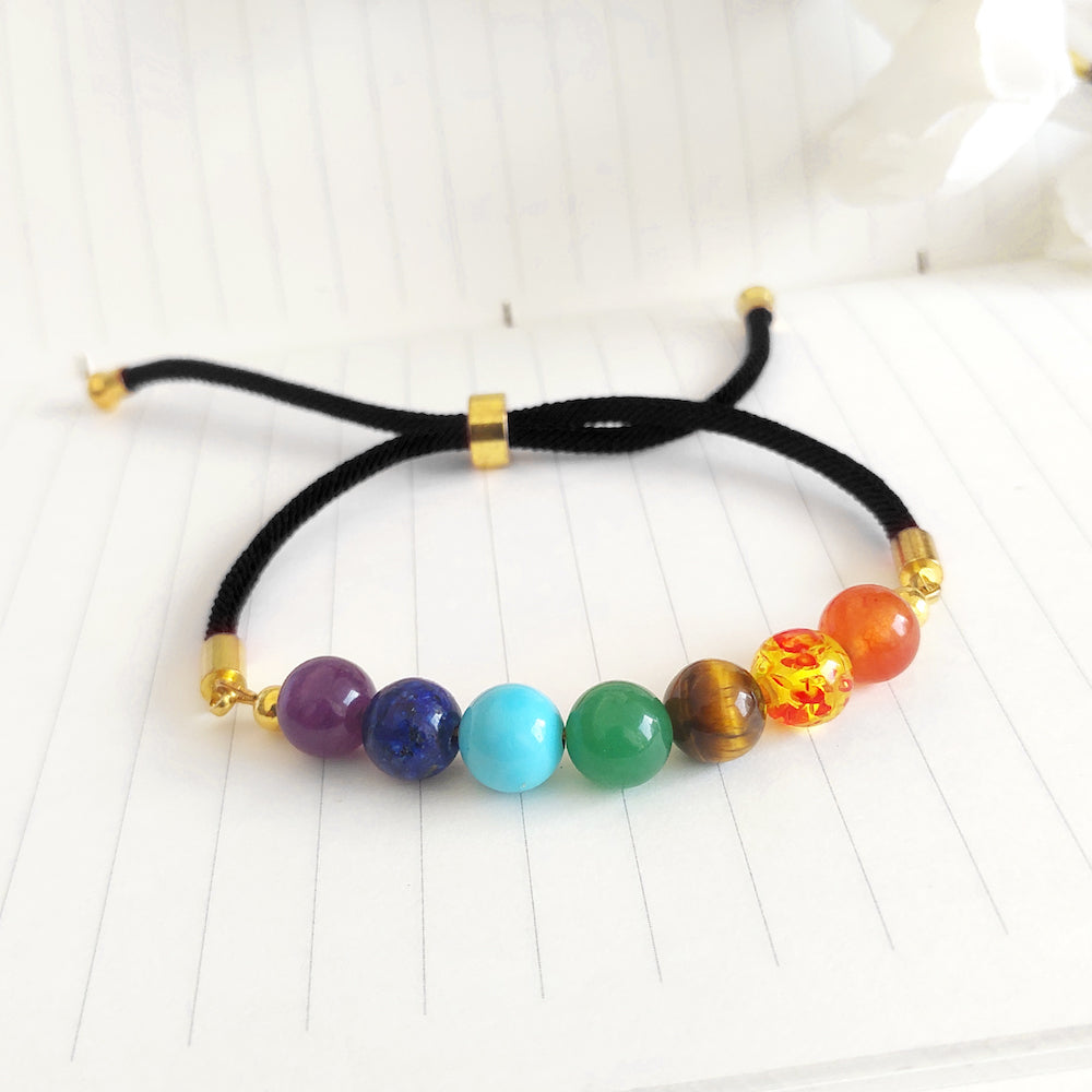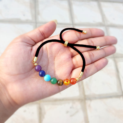 7 Chakra Bracelet - Adjustable Thread with 8mm Natural Stones