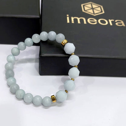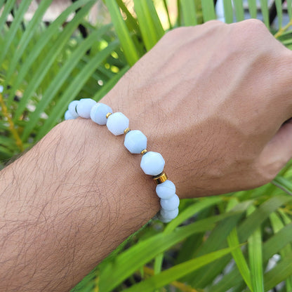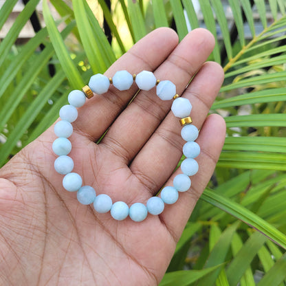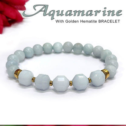Diamond Cut Aquamarine With Golden Hematite Natural Stone Bracelet