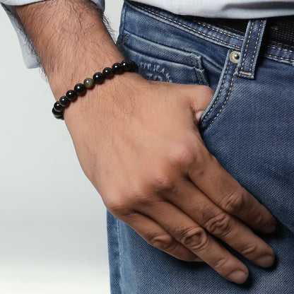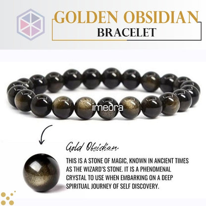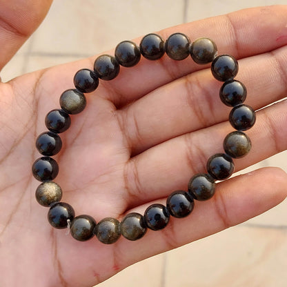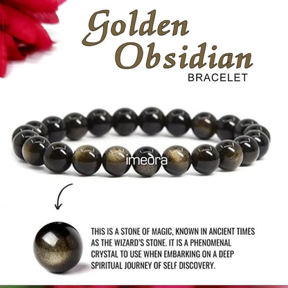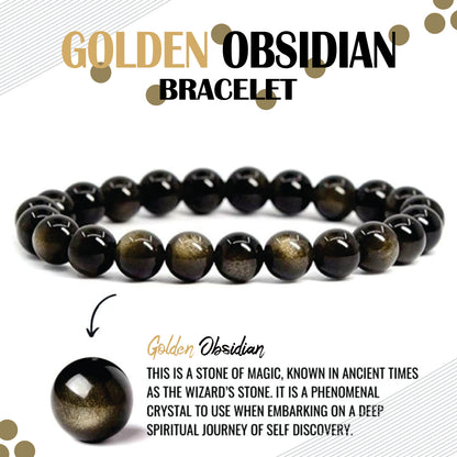 Wearing a golden obsidian bracelet is said to promote self-reflection and inner growth, and to help release negative energy and emotions. It is also believed to have protective qualities, helping to shield the wearer from negativity and harm.