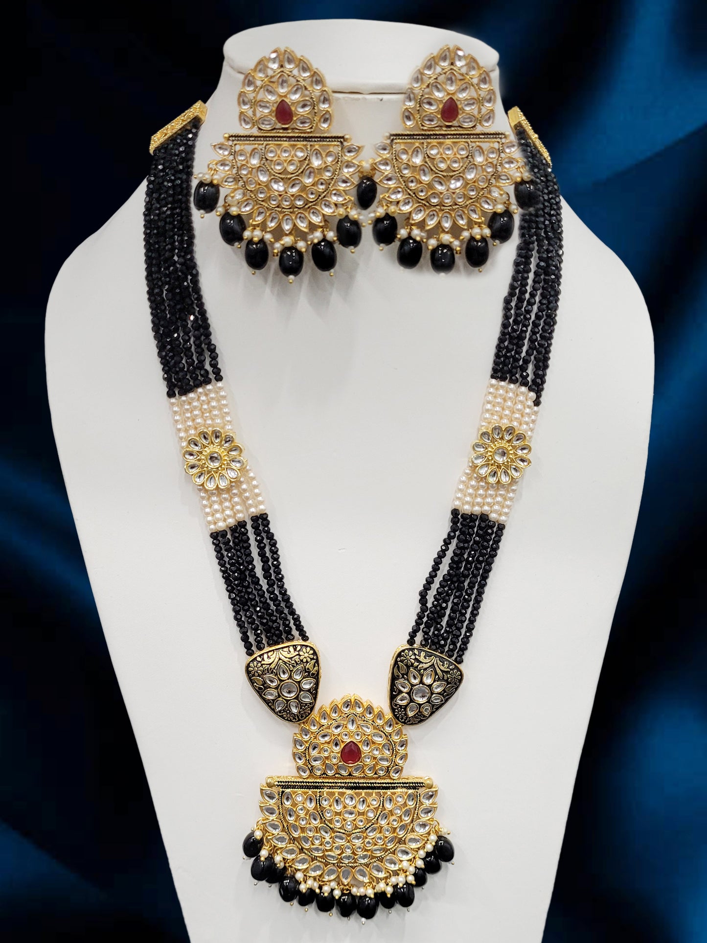 Imeora Designer Black Pendant Necklace Set With Handmade Dori And Stone Hangings