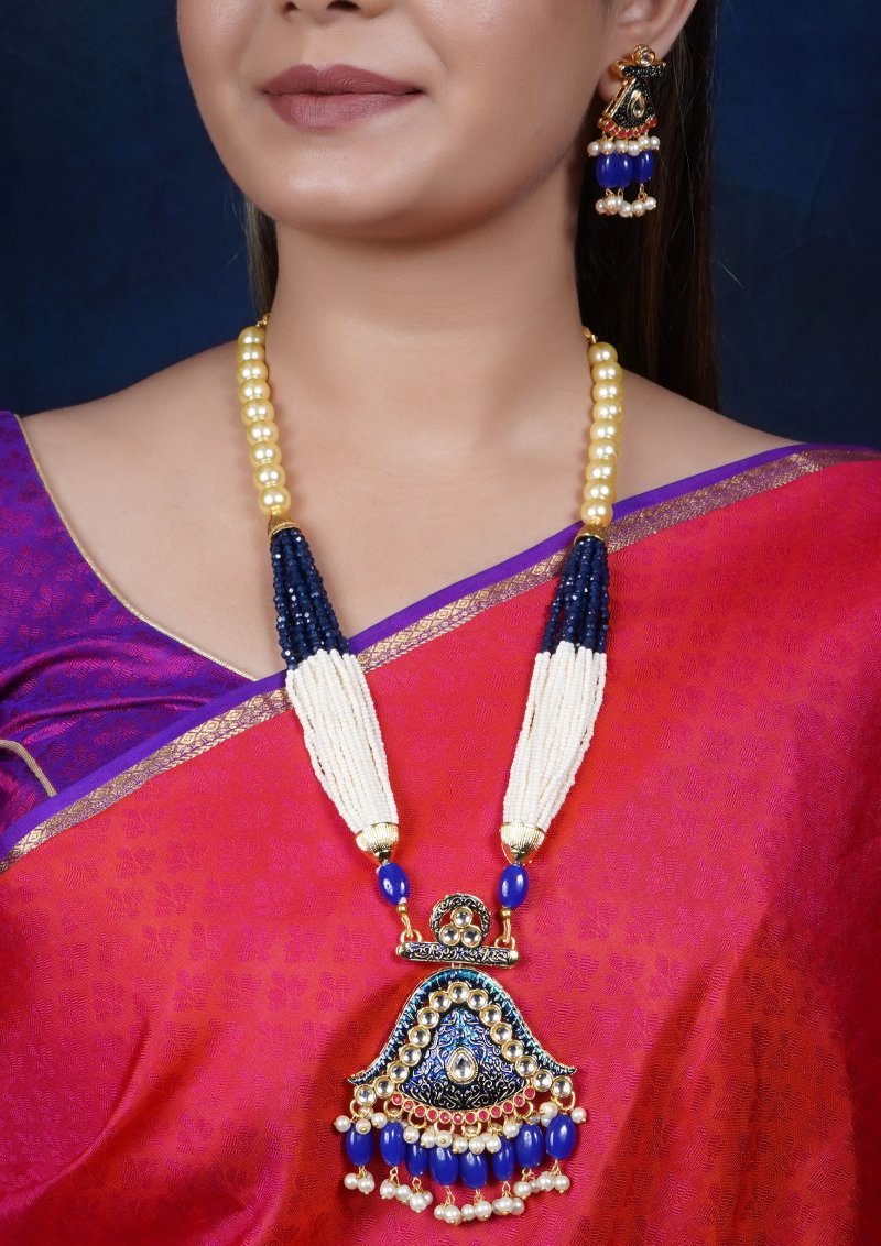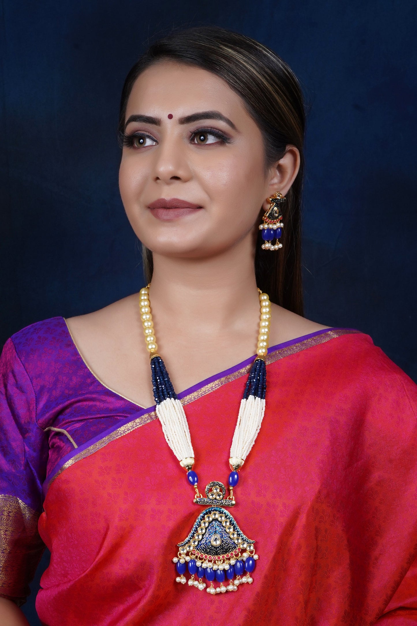 Imeora Designer Multiline Pendant Necklace Set With Stone Hangings And Handmade Dori