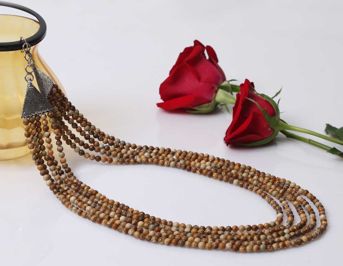 Imeora Exclusive Five Layer Picture Jasper 4mm Natural Stone Necklace