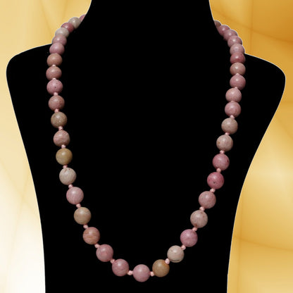 Imeora Hand Knotted Rhodochrosite 10mm Natural Stone Necklace
