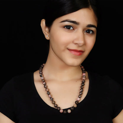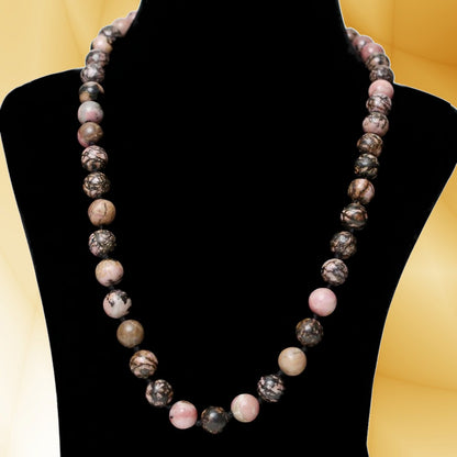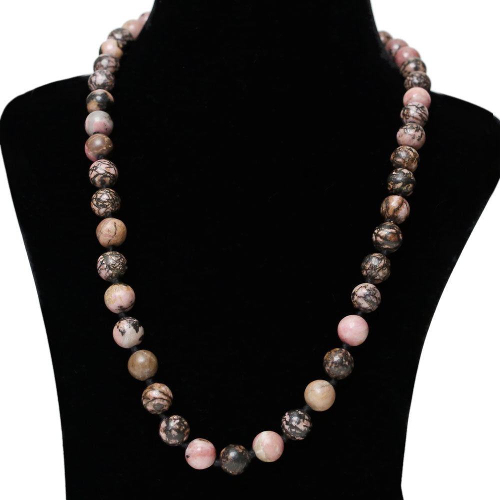 Imeora Hand Knotted Rhodonite 10mm Natural Stone Necklace