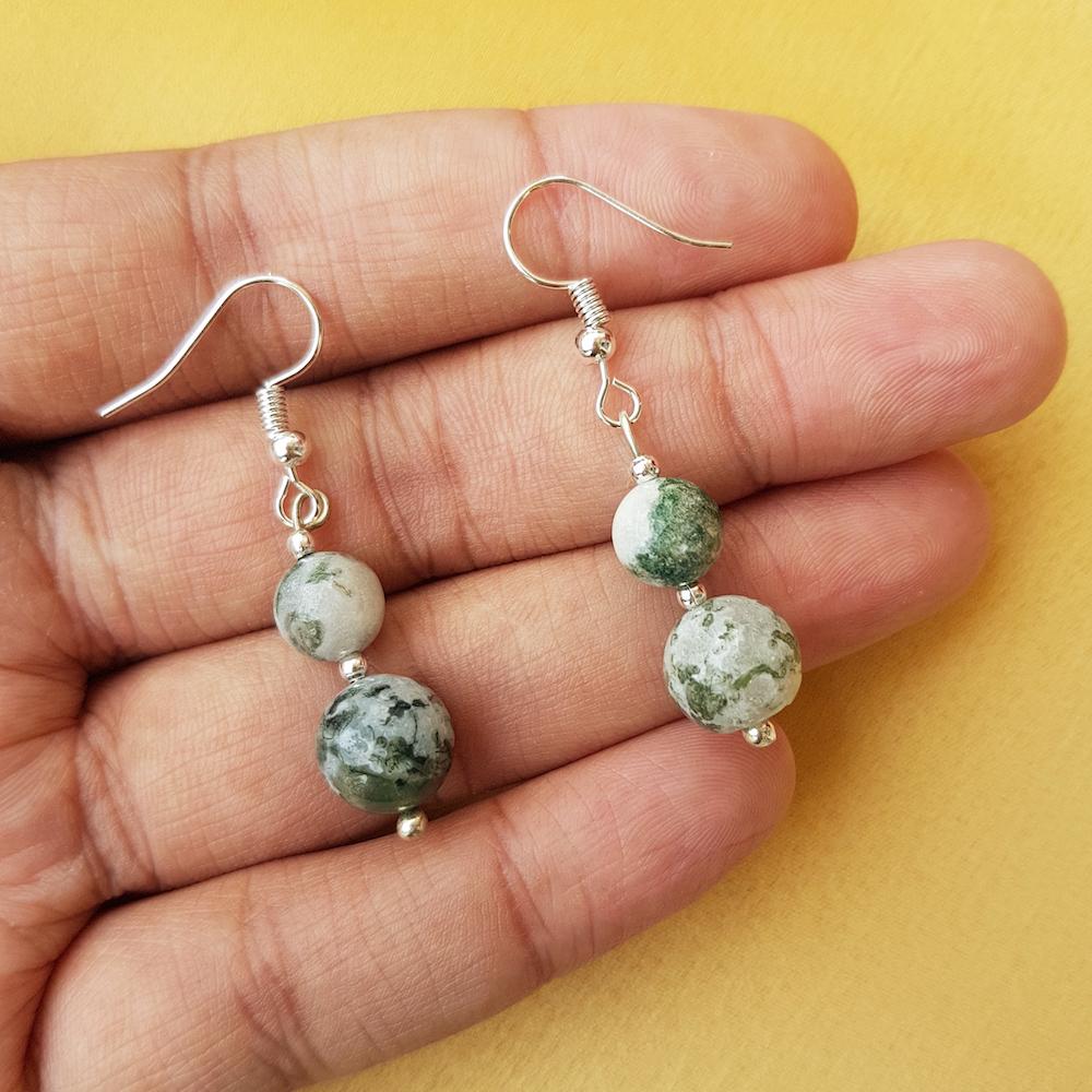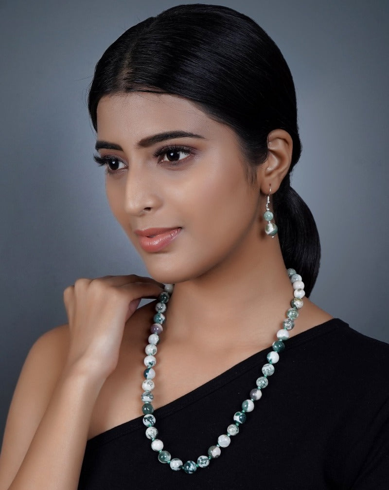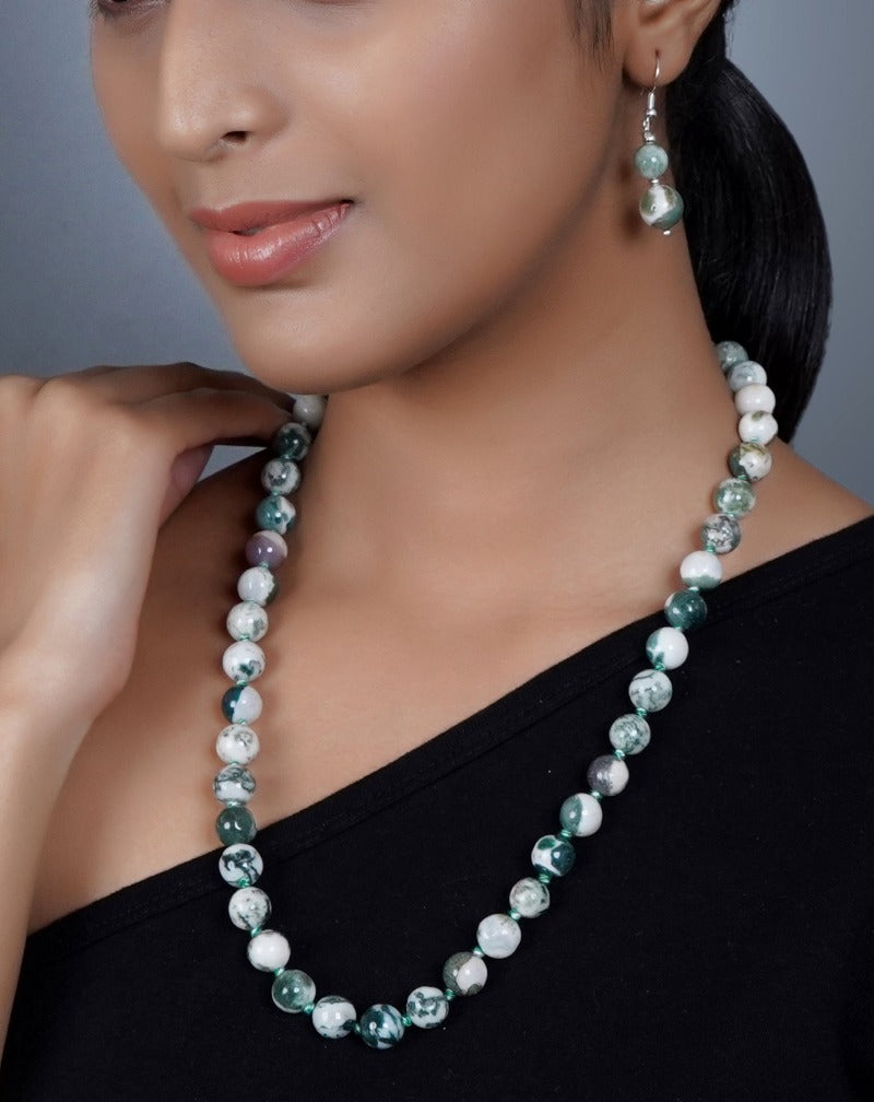Imeora Hand Knotted Tree Agate 10mm Natural Stone Necklace With Earrings
