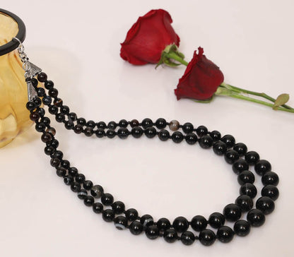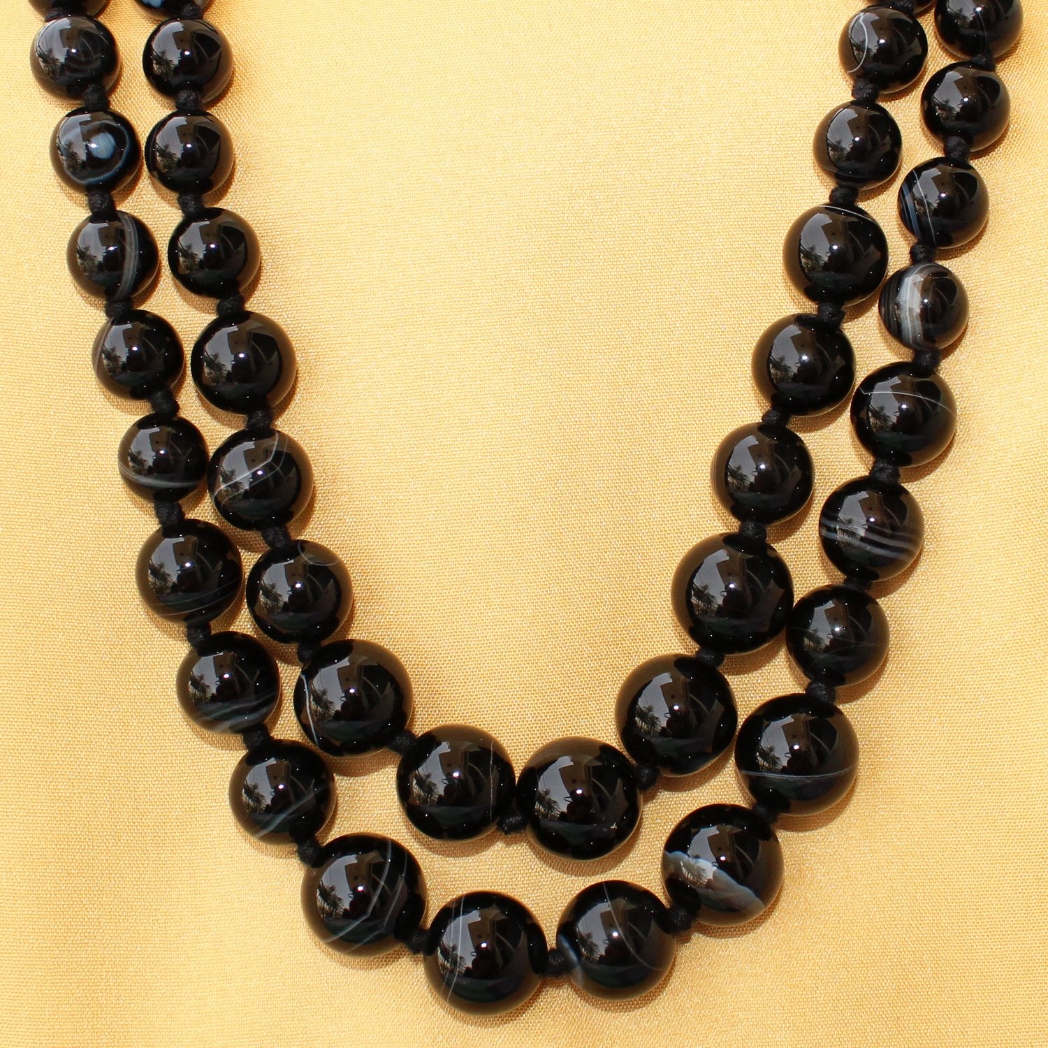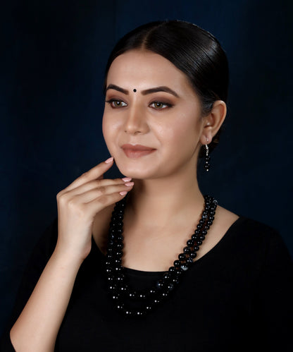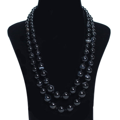 Imeora Knotted Black Agate Graduation Double Line Necklace With 8mm Earrings