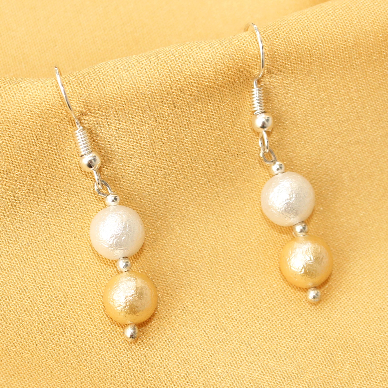 Imeora Matte Finish White Golden 8mm Shell Pearl Earrings