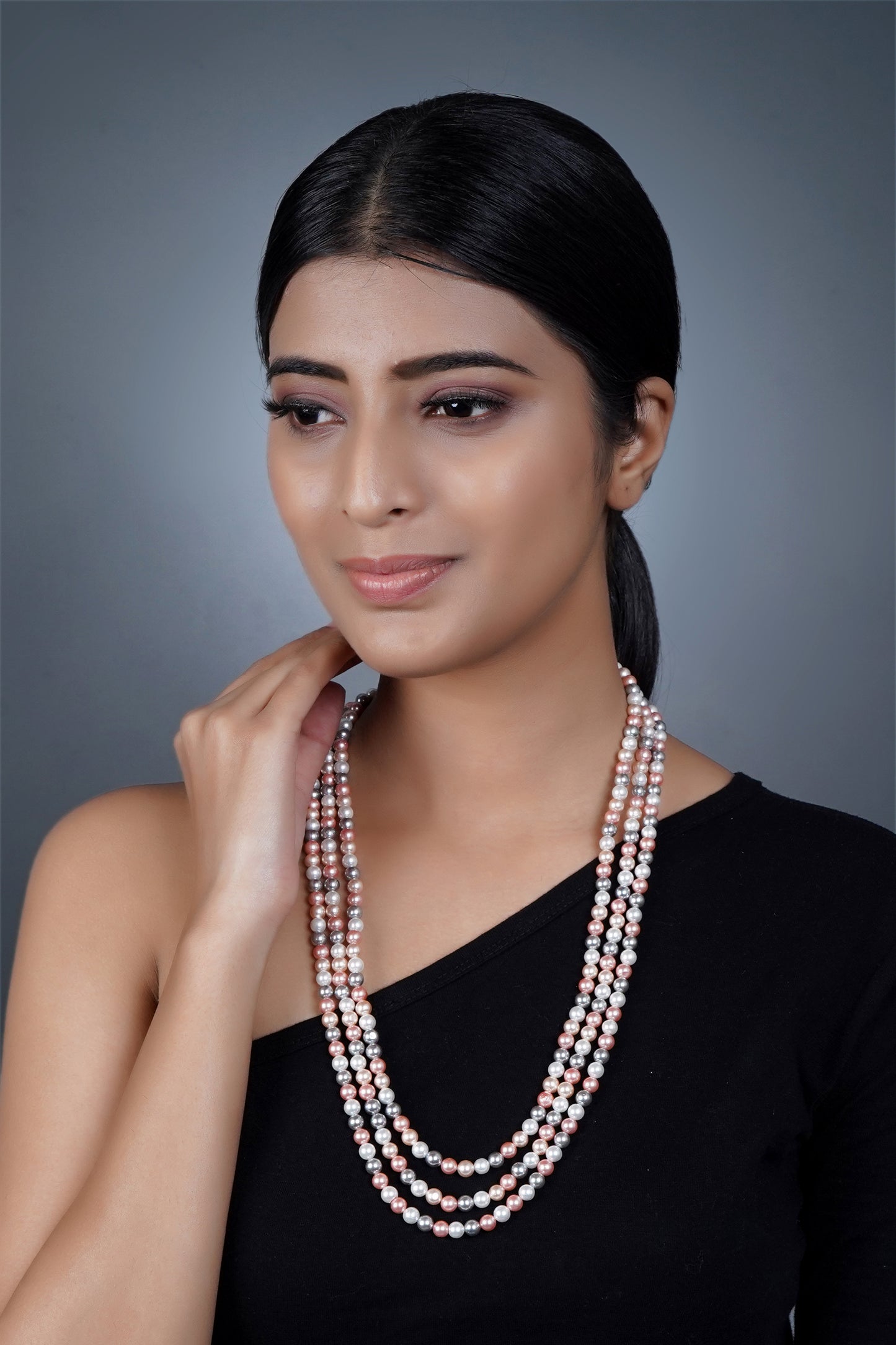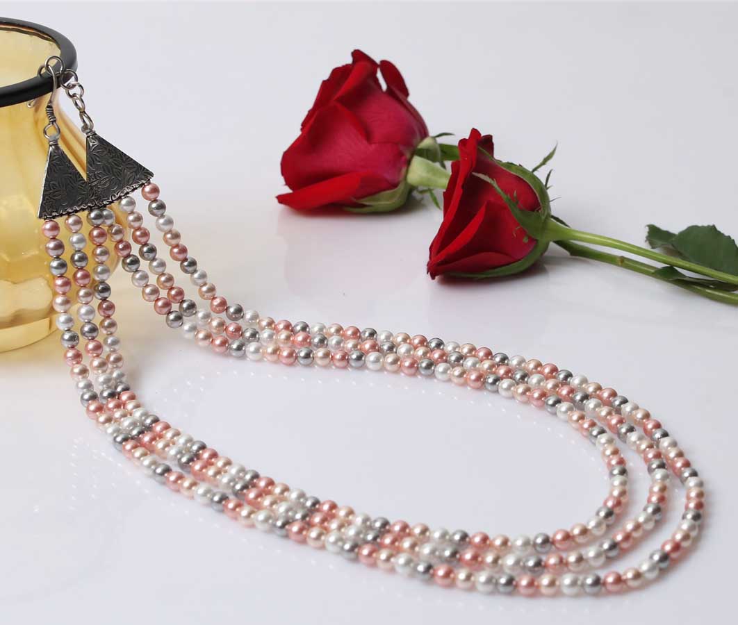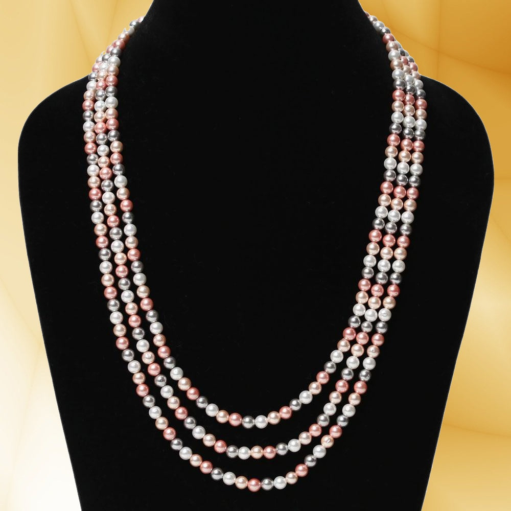 Imeora Multicolor 6mm Tripple Line Shell Pearl Necklace