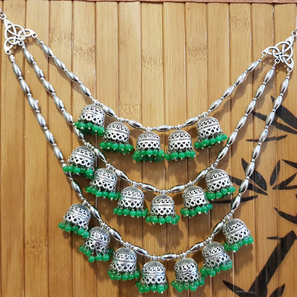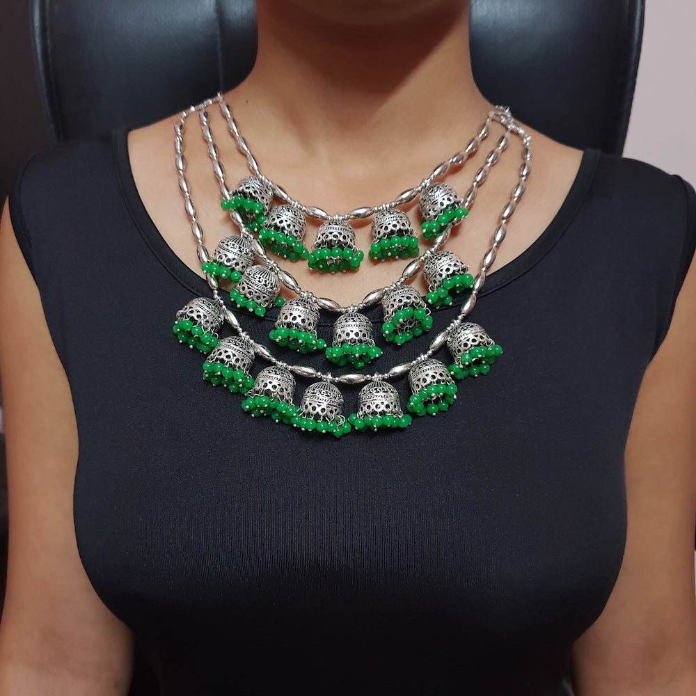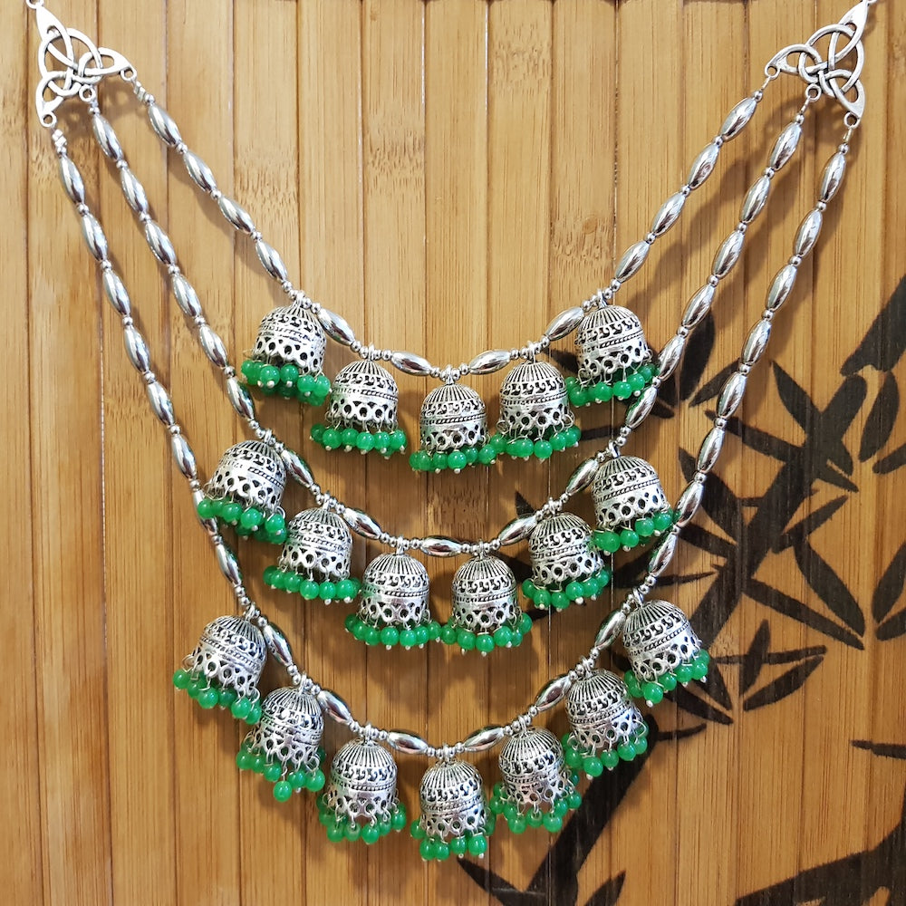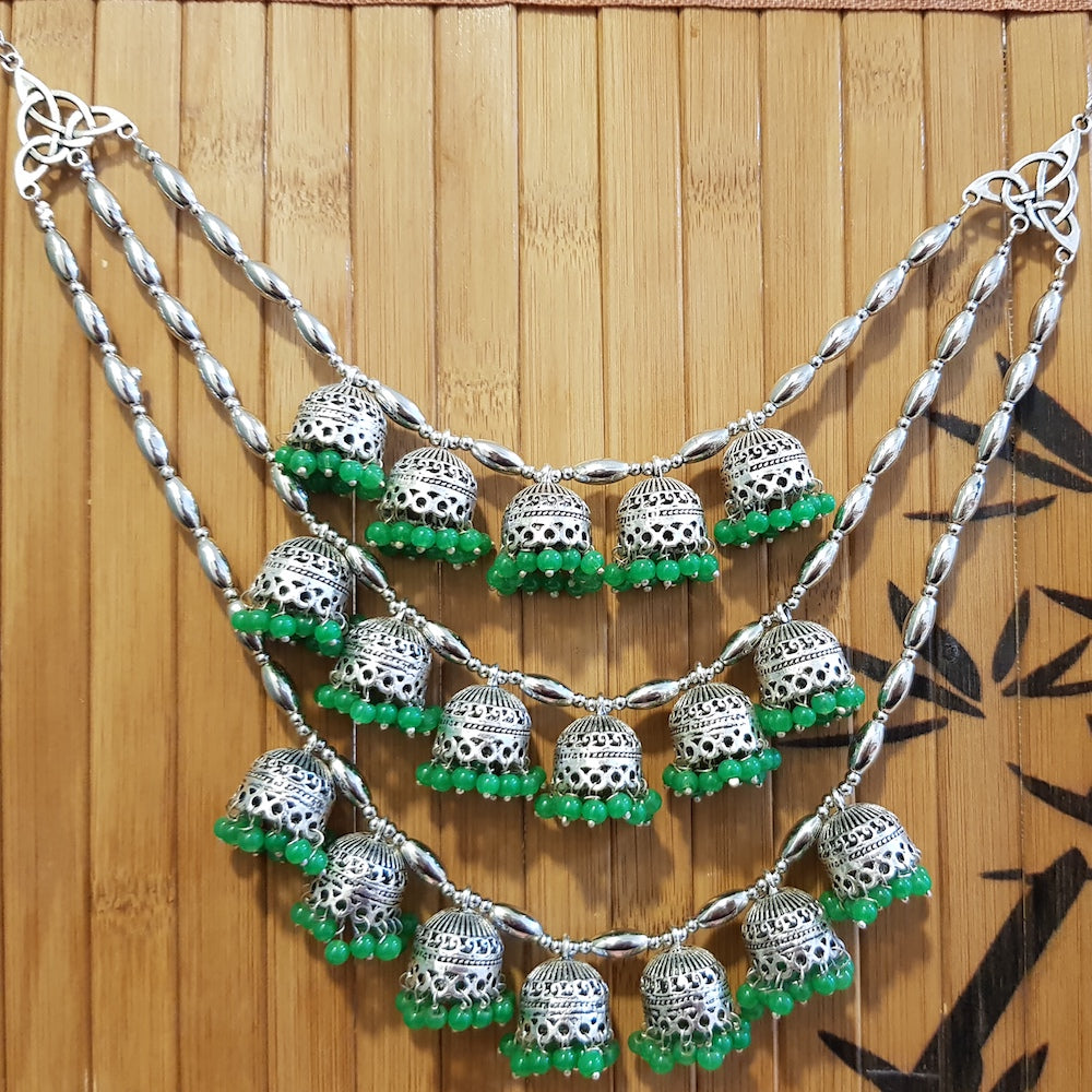 Imeora Multi Jhumki Tribal Necklace with Green Hangings