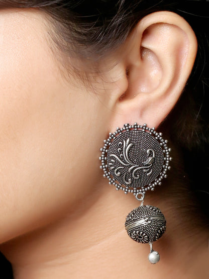 Imeora Stud With Peacock And Ball Hanging Earrings