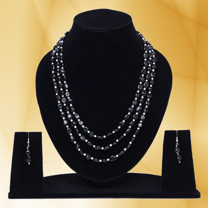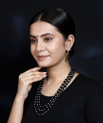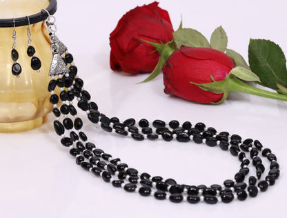 Imeora Tripple Line Black Onyx Necklace Set With 4mm Beads