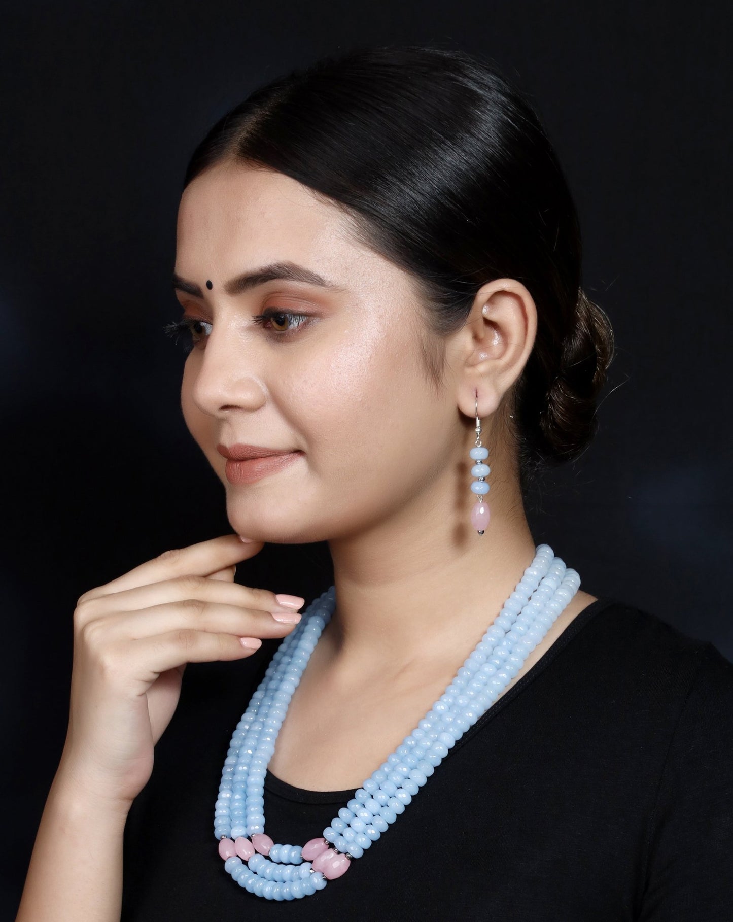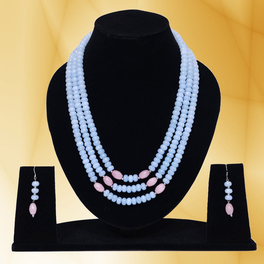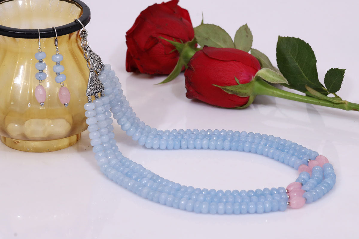 Imeora Tripple Line Light Blue Quartz Necklace Set