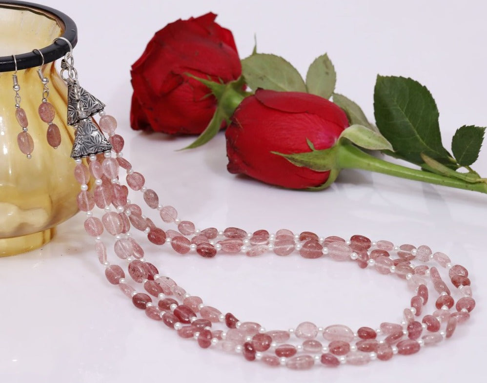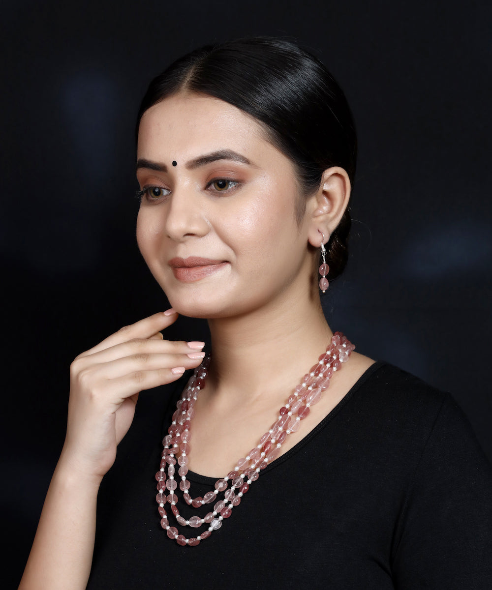 Imeora Tripple Line Red Aventurine Necklace Set With 4mm Beads
