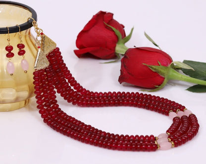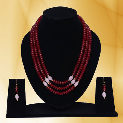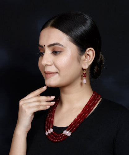Imeora Tripple Line Maroon Quartz Necklace Set