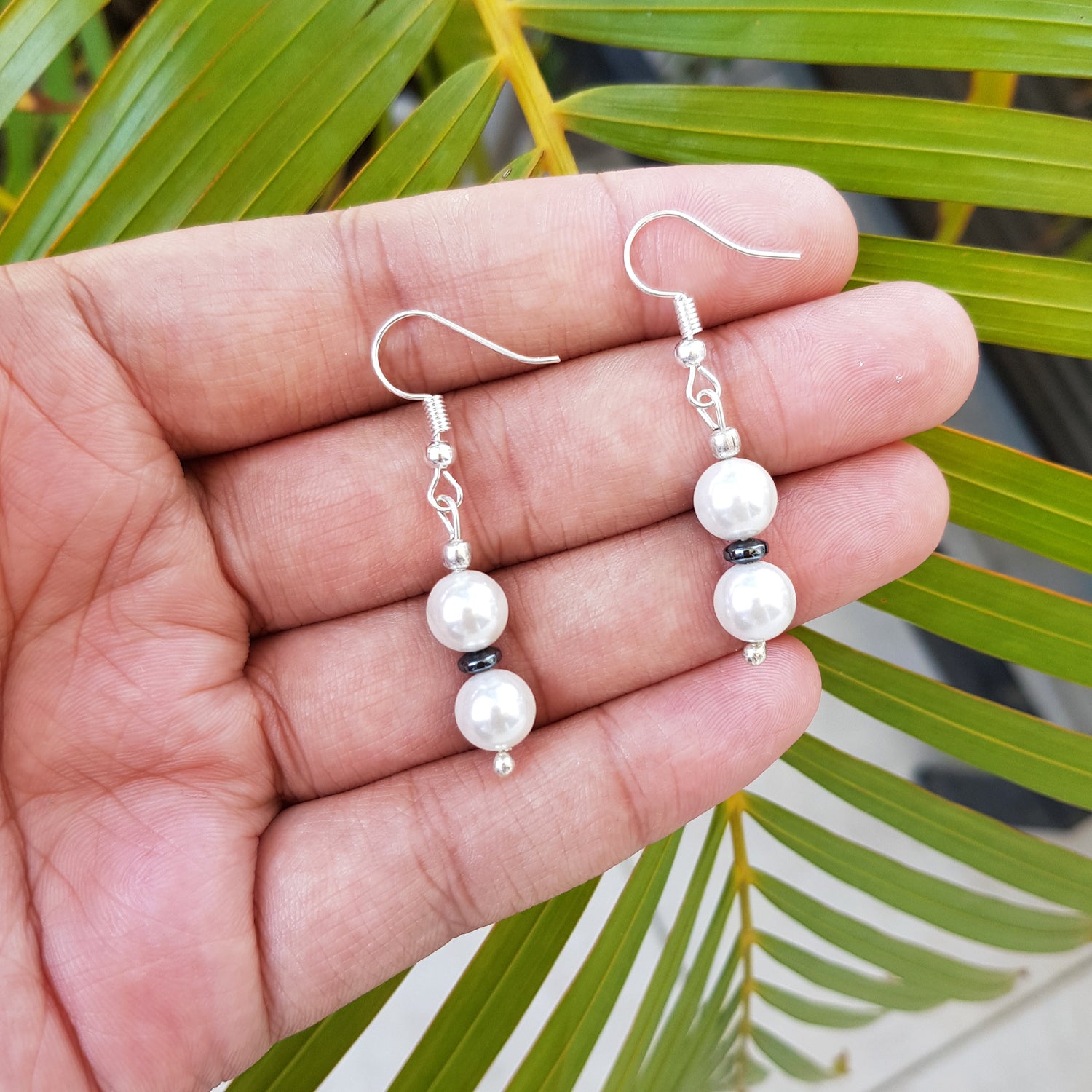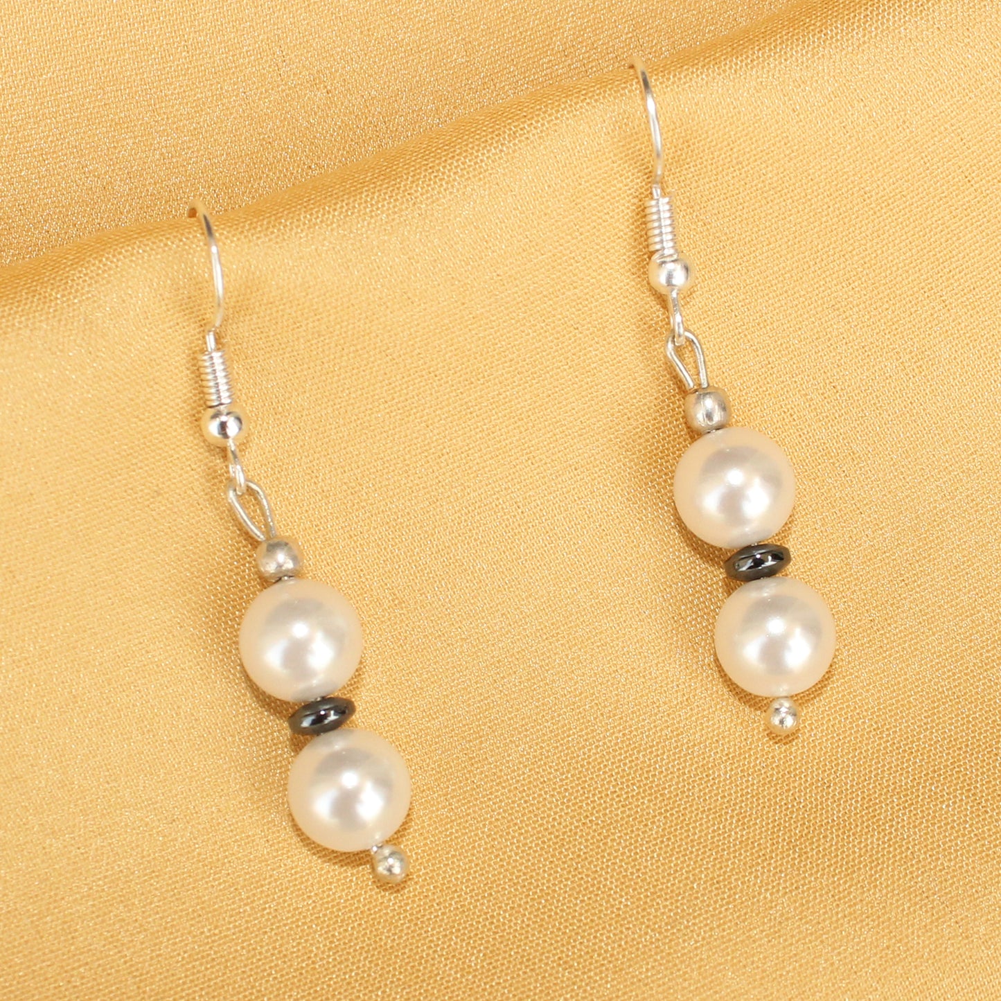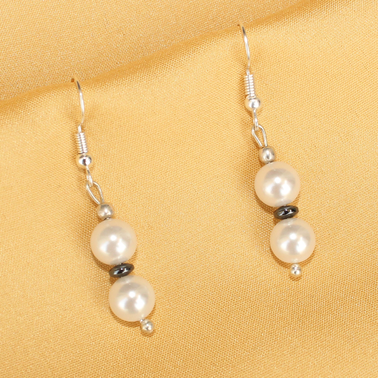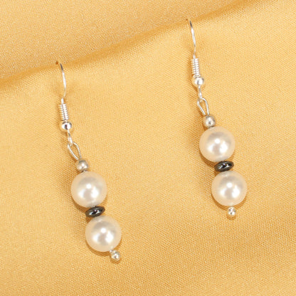 Imeora White Shell Pearl 8mm With Hematite Earrings