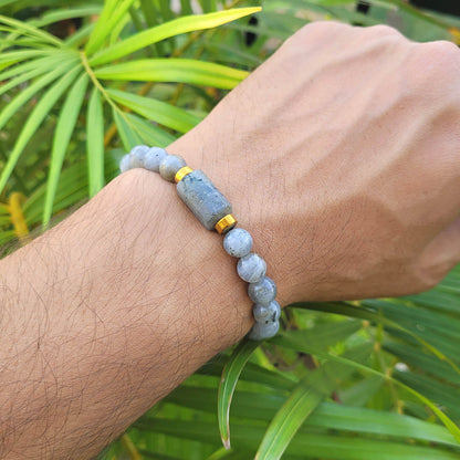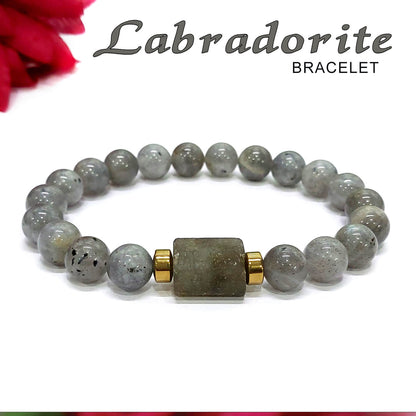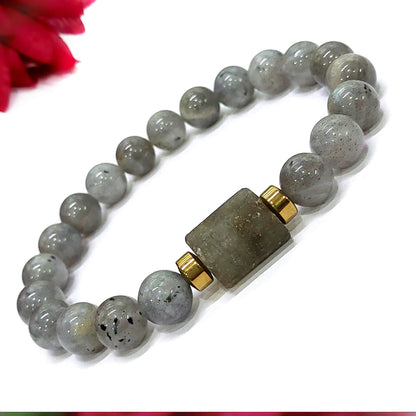 Premium Labradorite Matte Tumble Bracelet With Golden Hematite