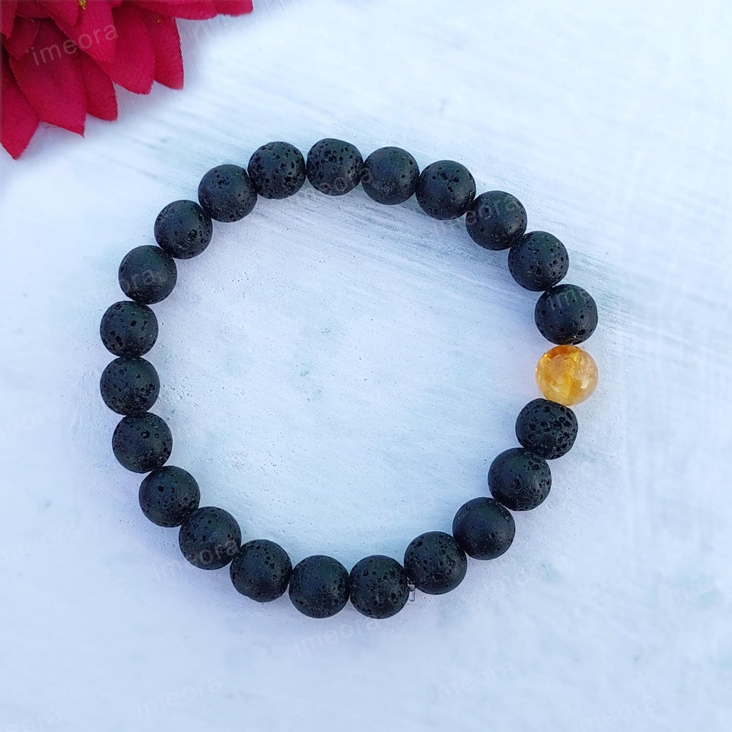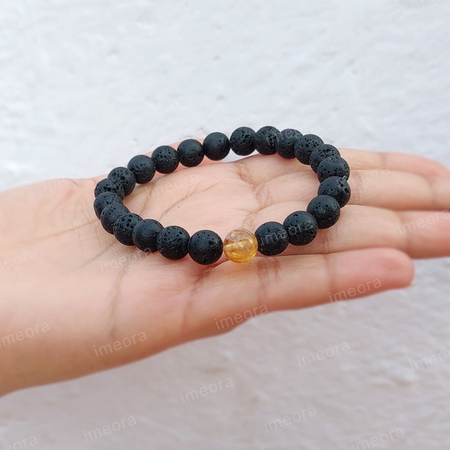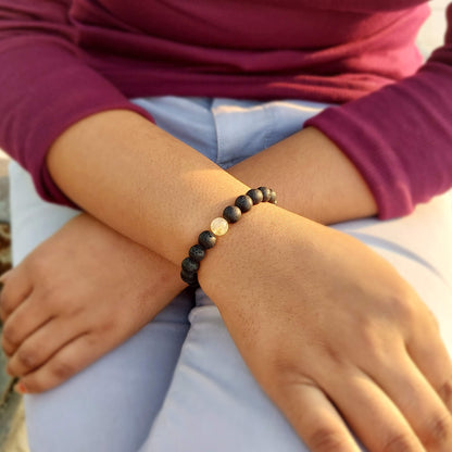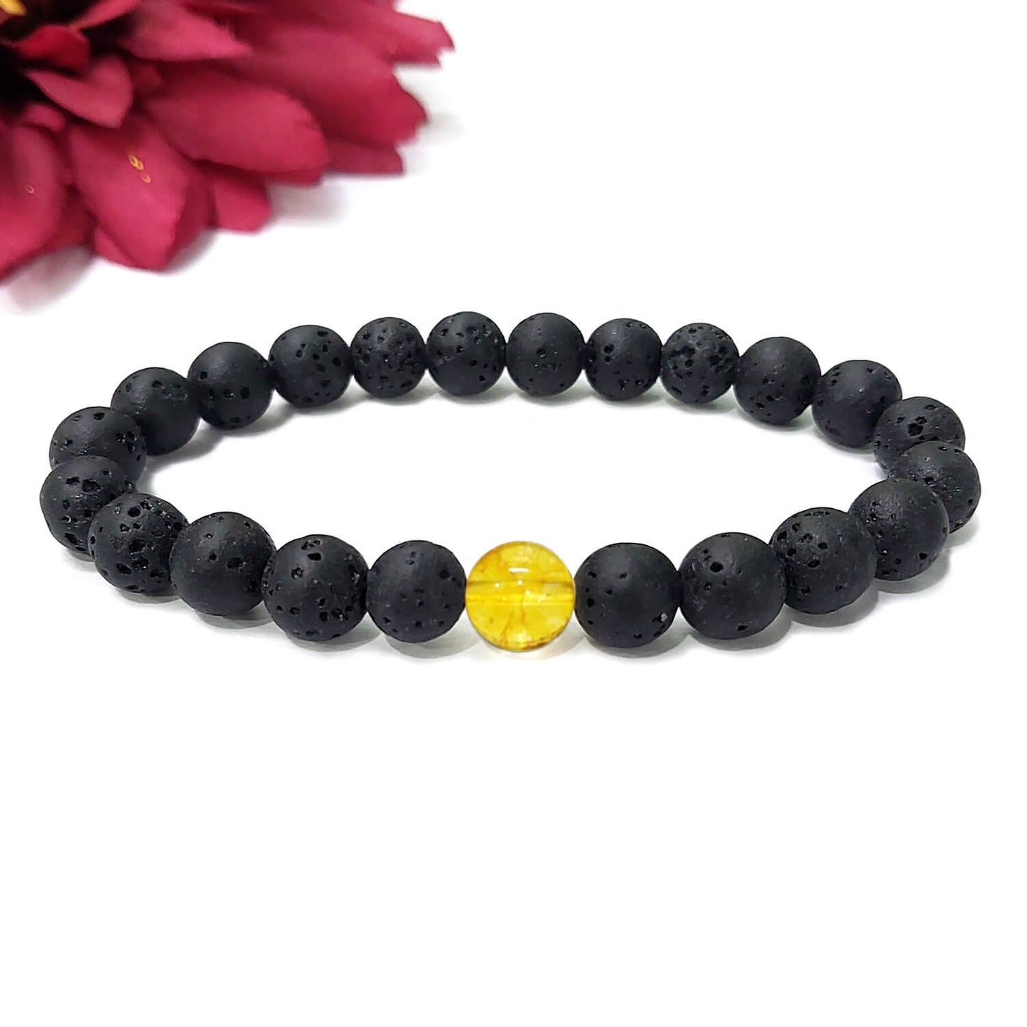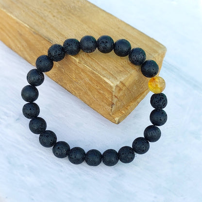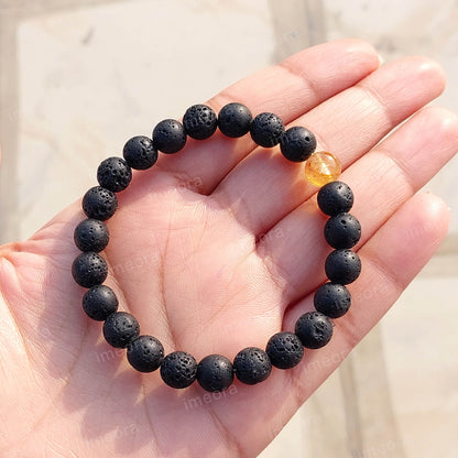 Certified Lava Natural Stone 8mm Bracelet With Citrine