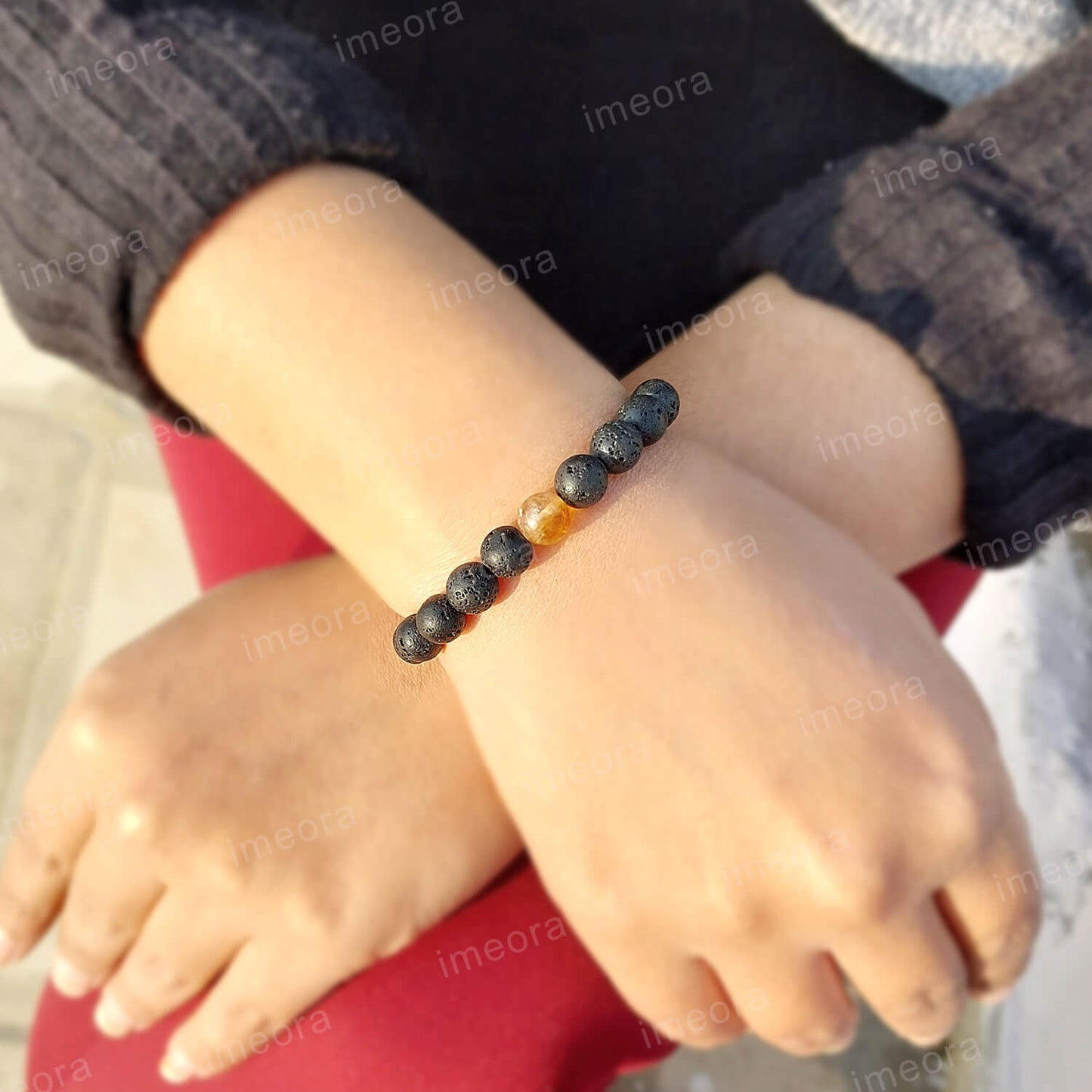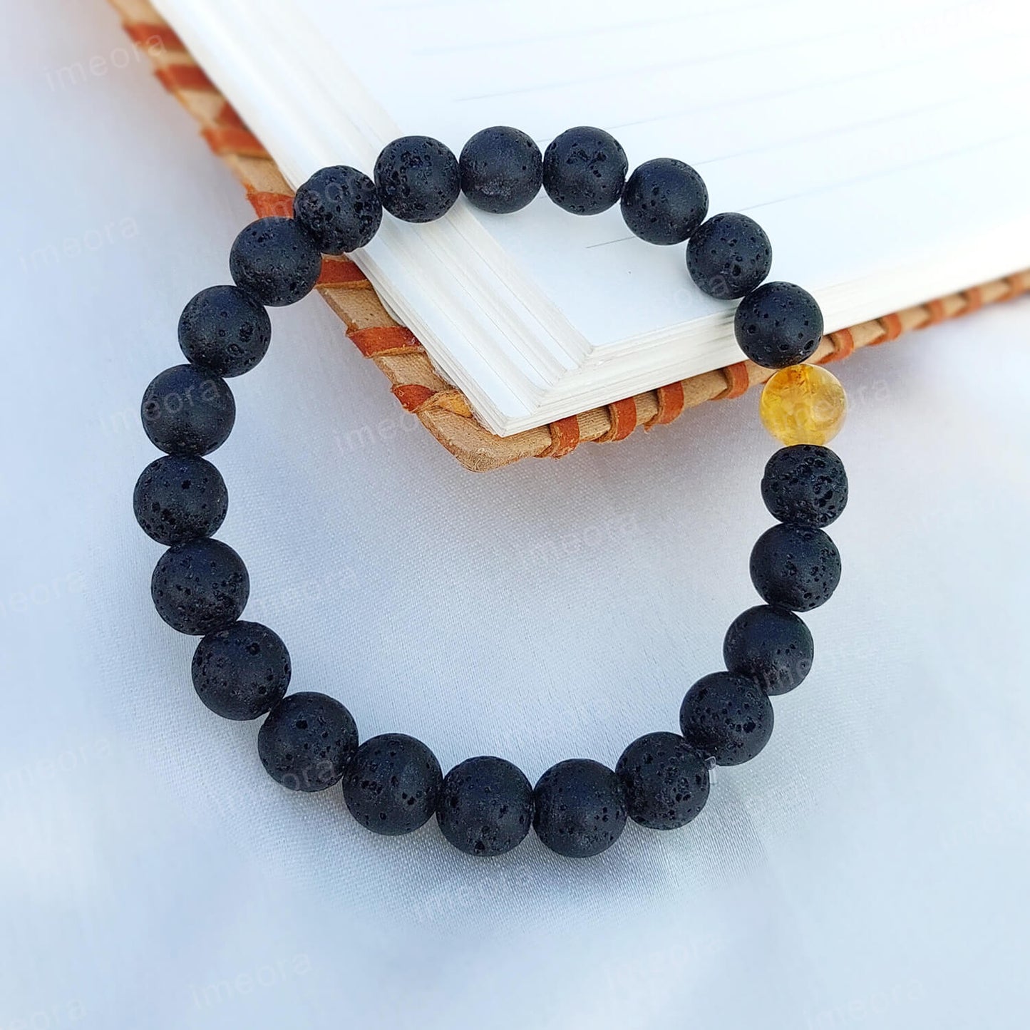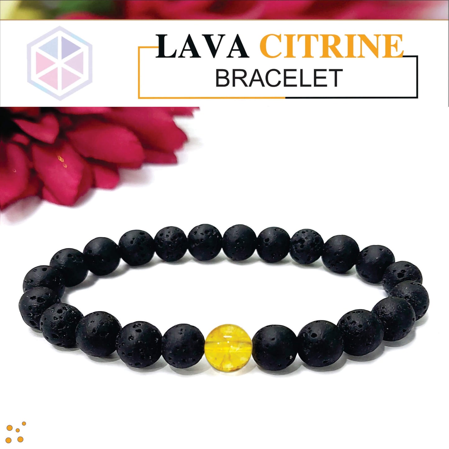 Certified Lava Natural Stone 8mm Bracelet With Citrine