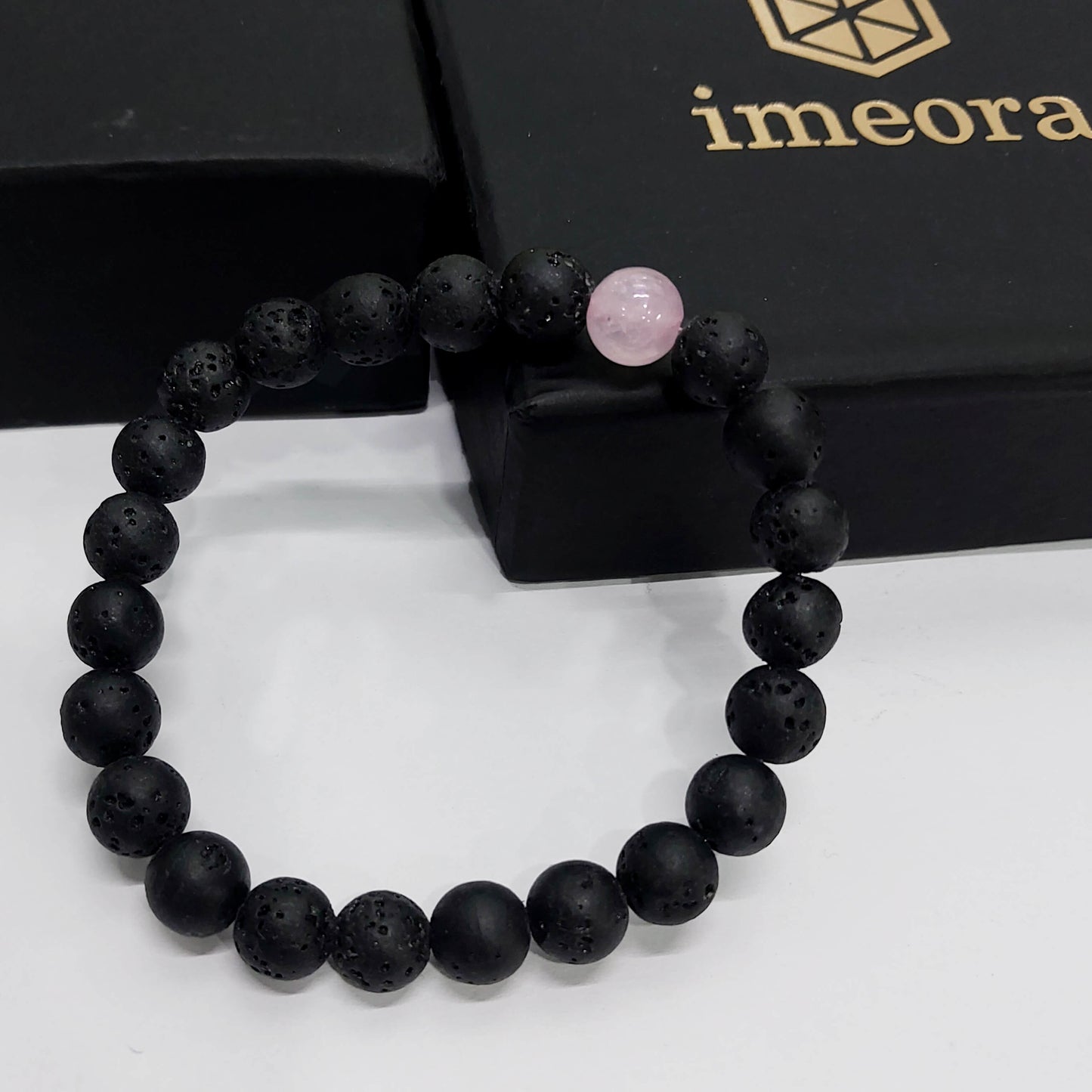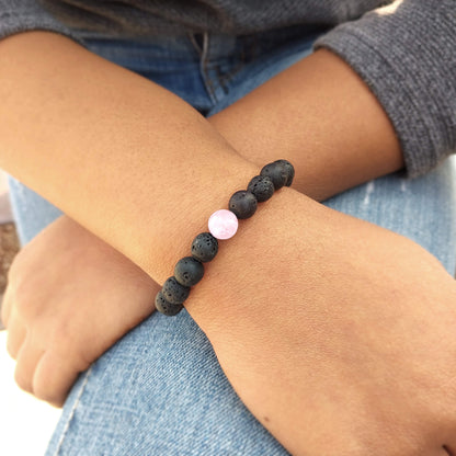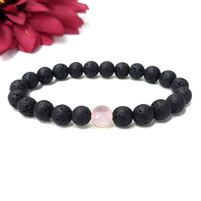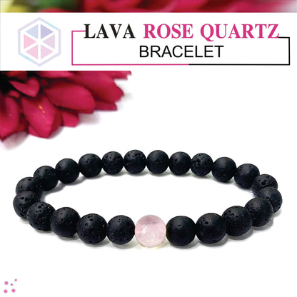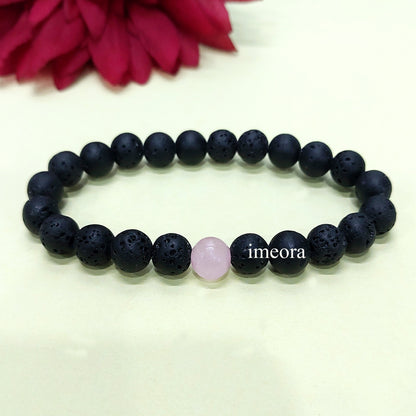 Certified Lava Natural Stone 8mm Bracelet With Rose Quartz