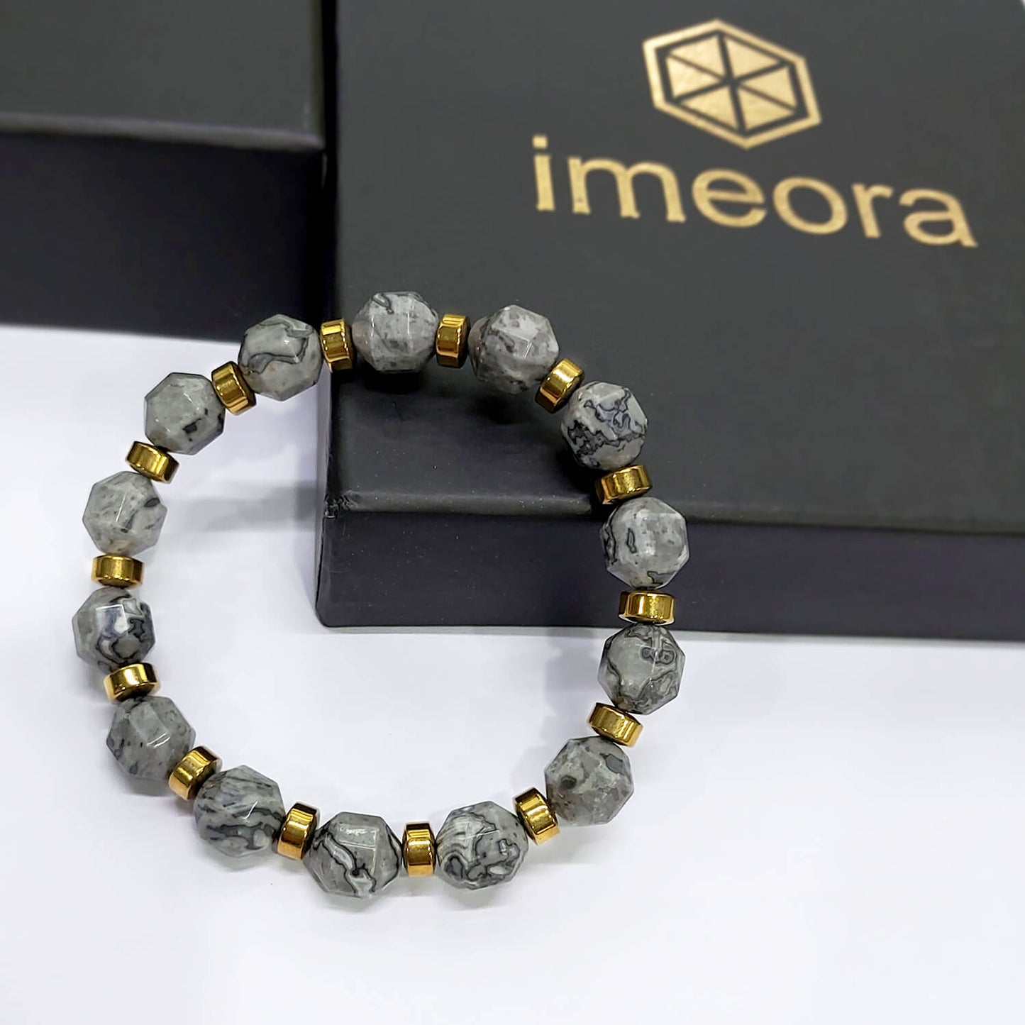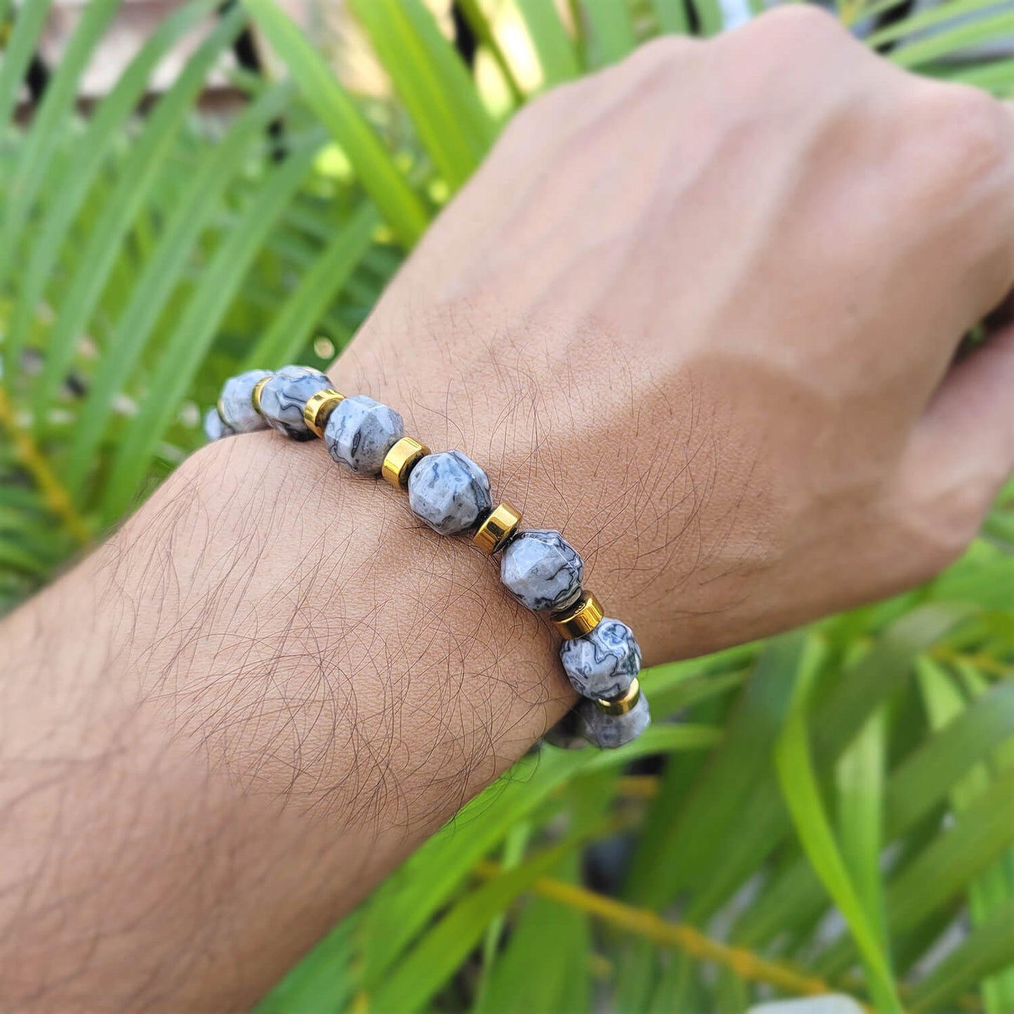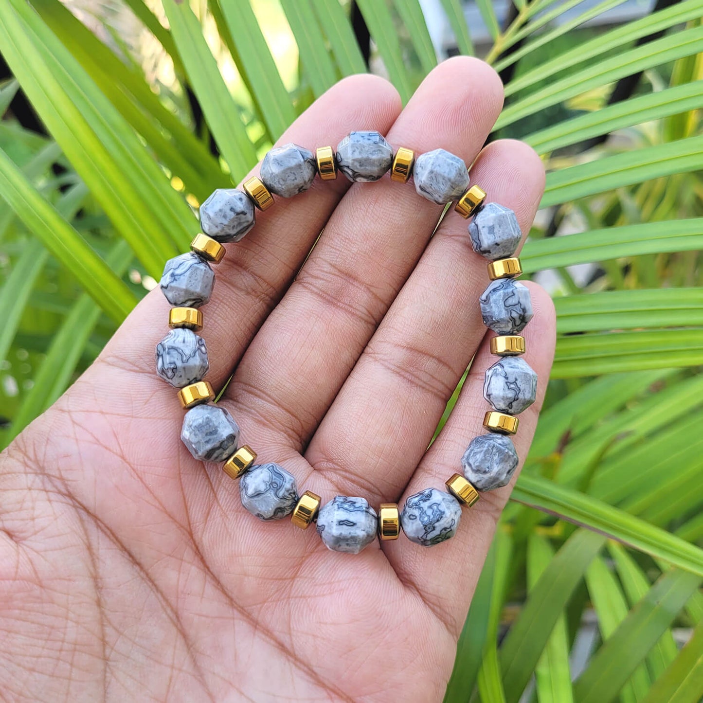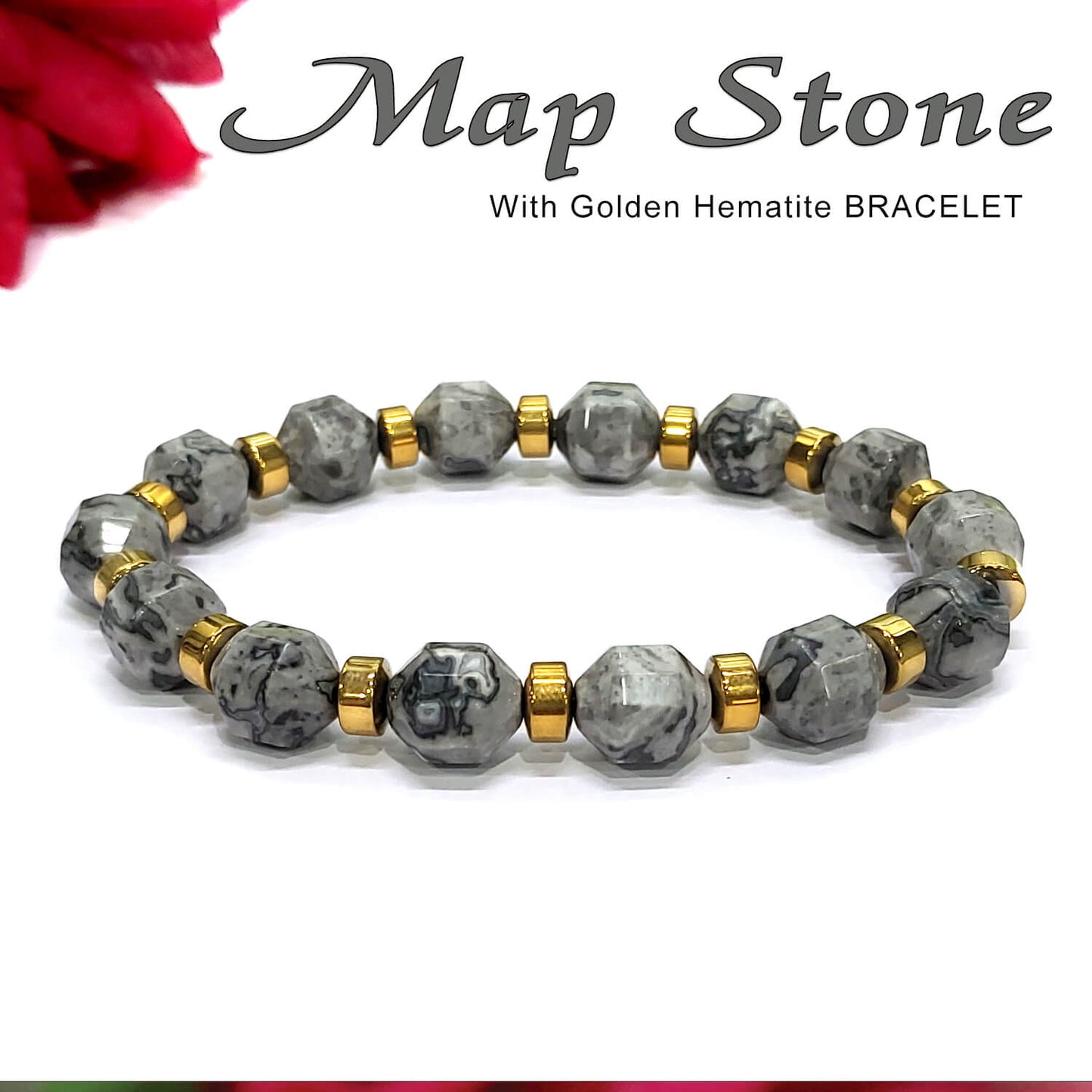 Diamond Cut Map Stone With Golden Hematite Natural Stone Bracelet