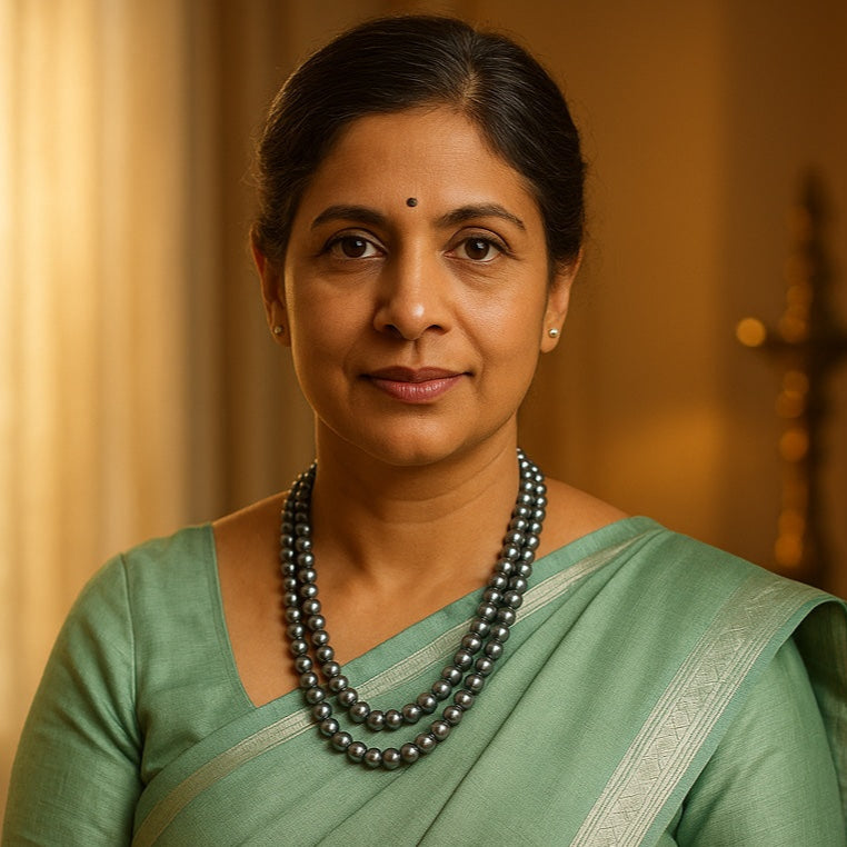 - Striking Yet Subtle: Deep gunmetal pearls shimmer under soft light — perfect for dinner dates, poojas, or family functions.
