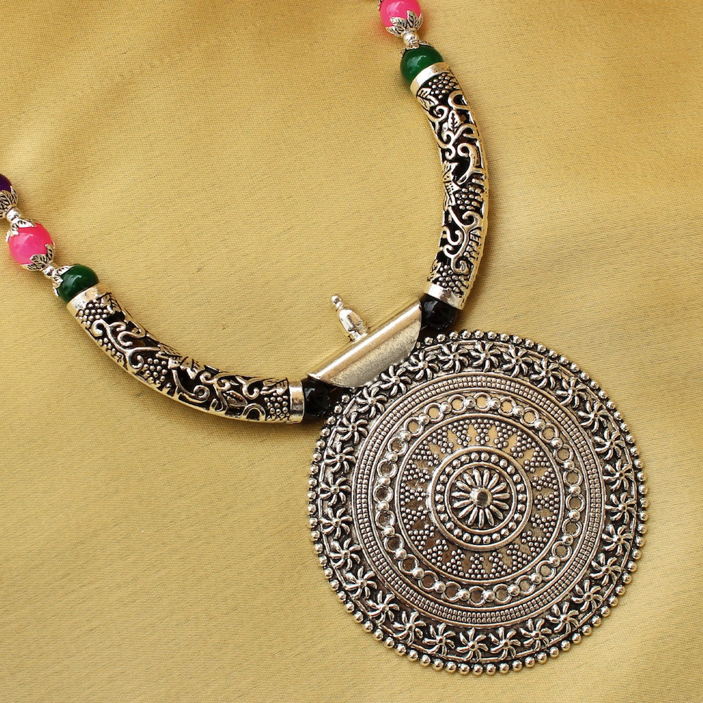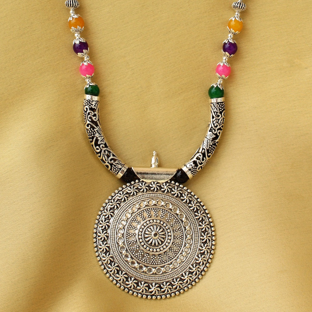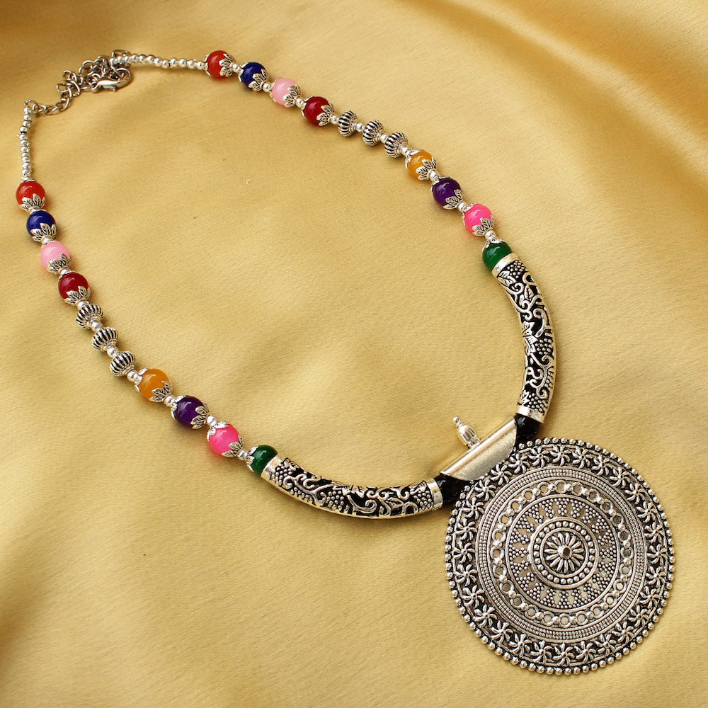 Multicolor Antique Pendant Necklace, Multicolor Tribal Pendant Necklace