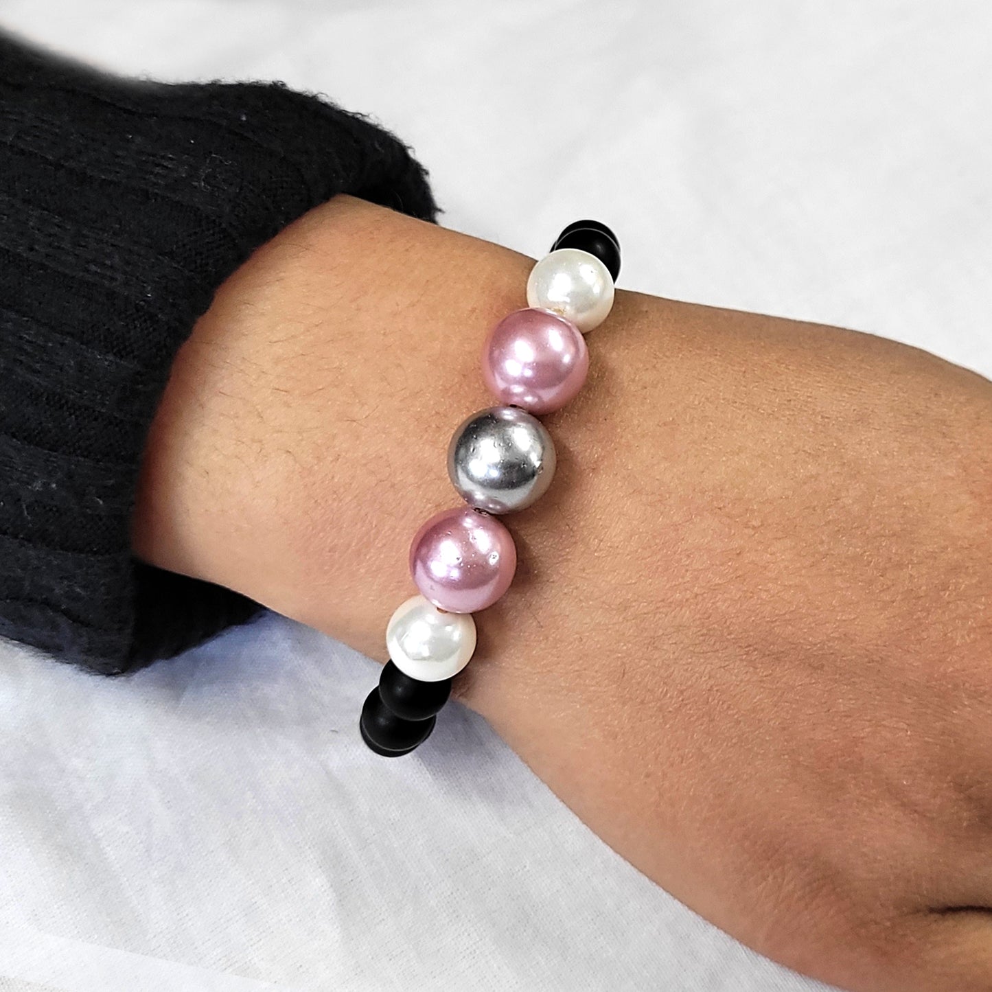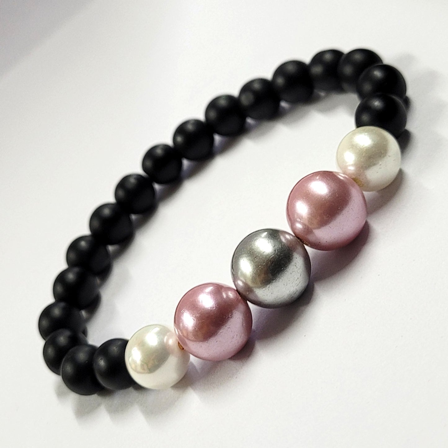 Multicolor Shell Pearls Bracelet With 8mm Black Beads