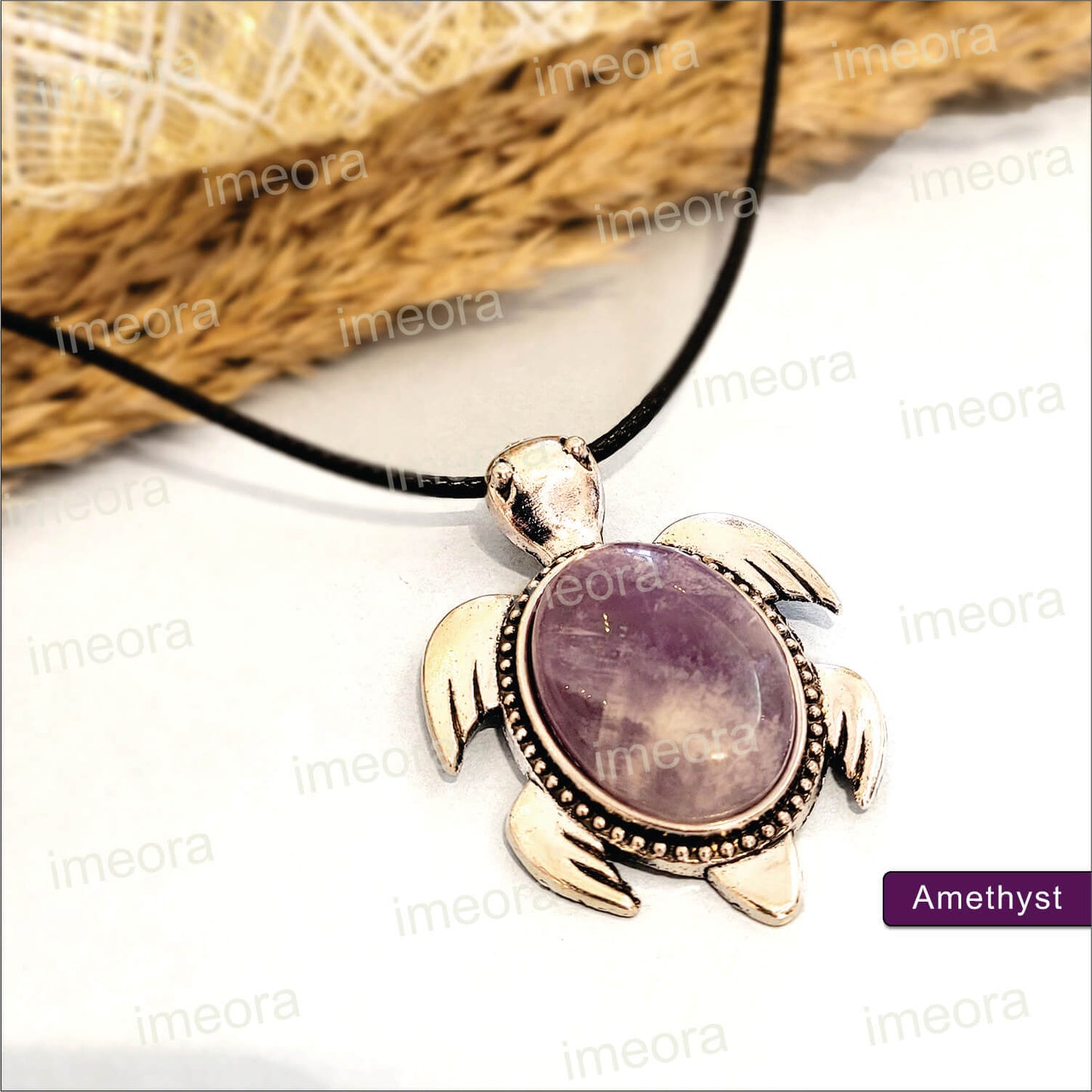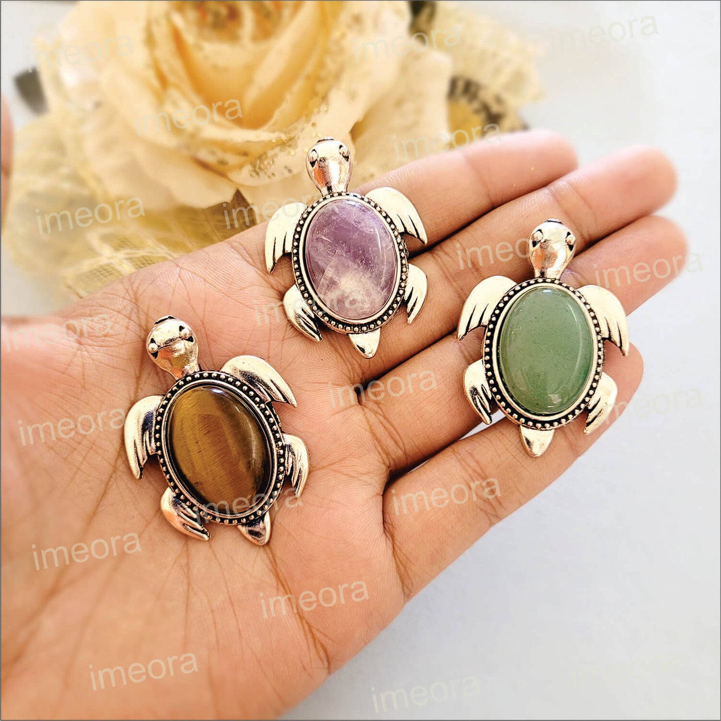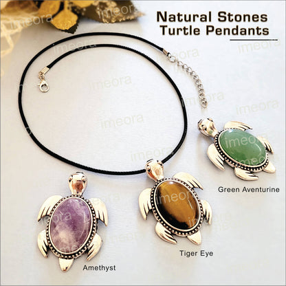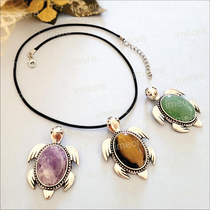 Discover the perfect harmony of nature and style with our exquisite Turtle Pendants crafted from premium natural stones. Embrace the elegance and spiritual essence of Amethyst, Tiger Eye, and Green Aventurine embodied in each pendant.