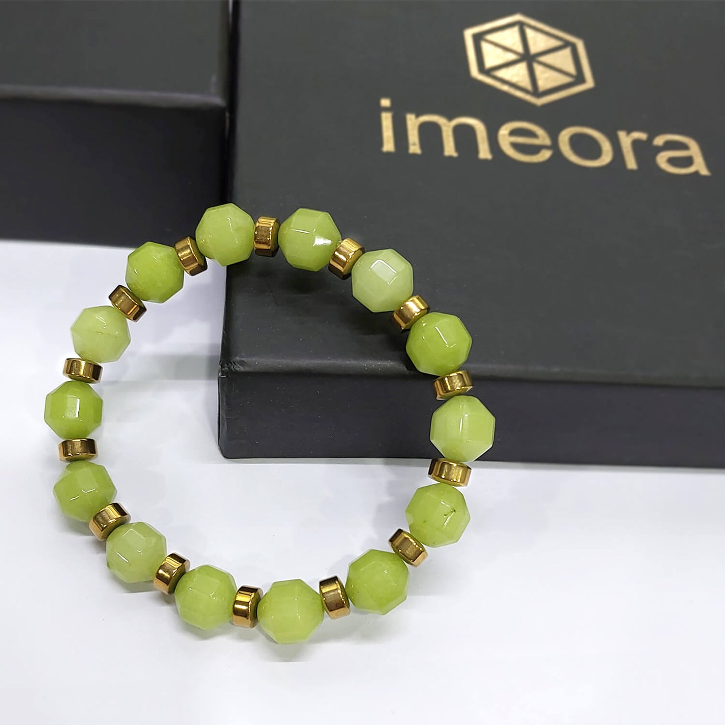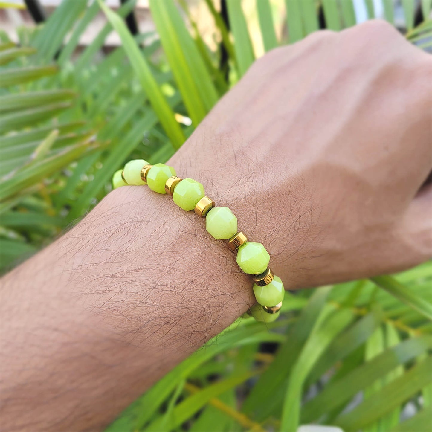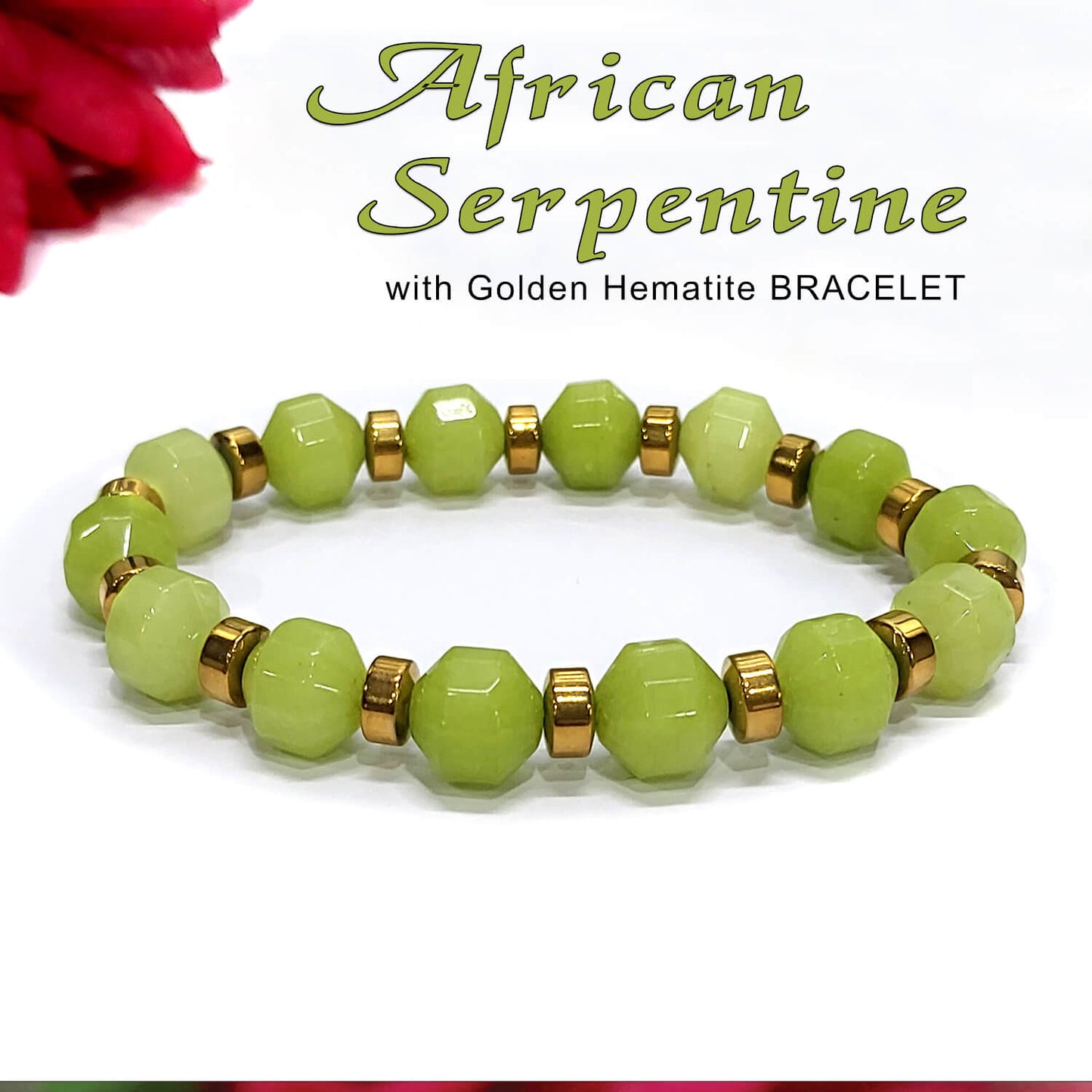 Diamond Cut African Serpentine With Golden Hematite Natural Stone Bracelet
