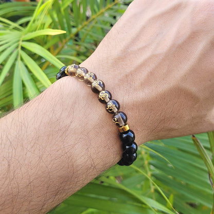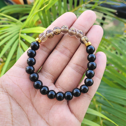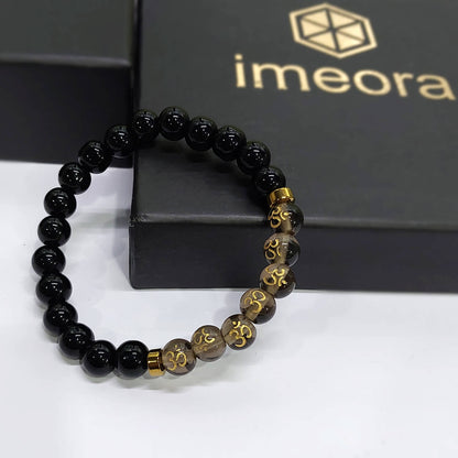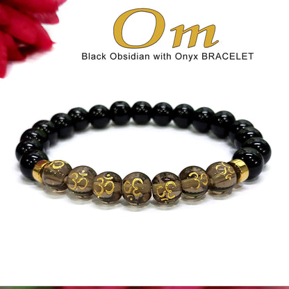 Om Black Obsidian With Onyx And Golden Hematite Bracelet