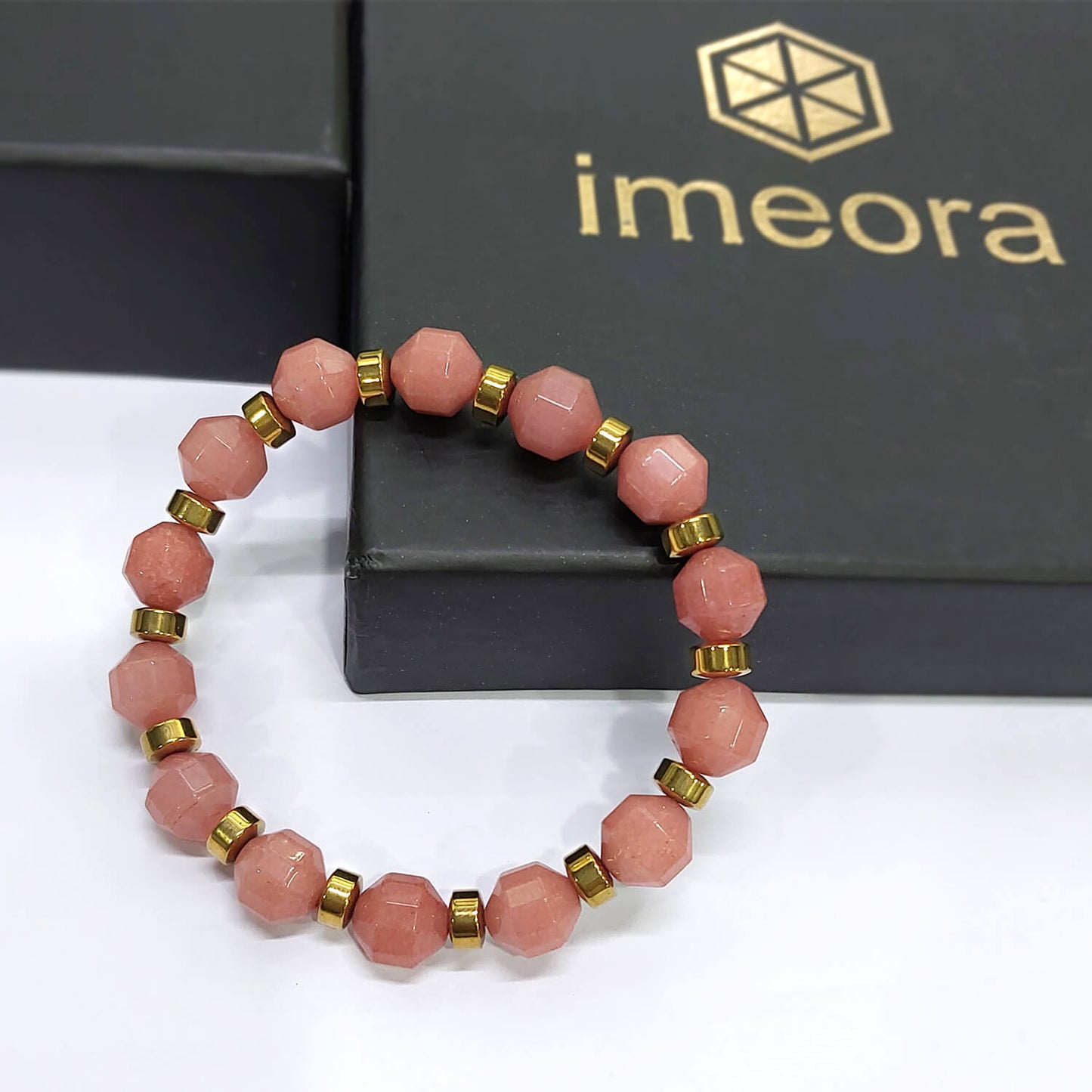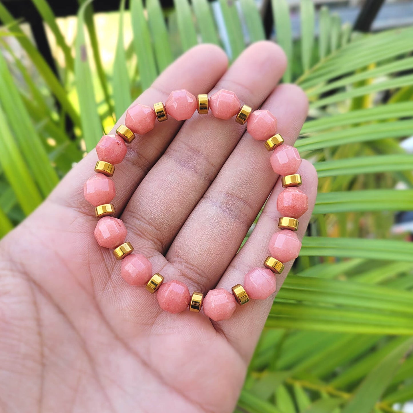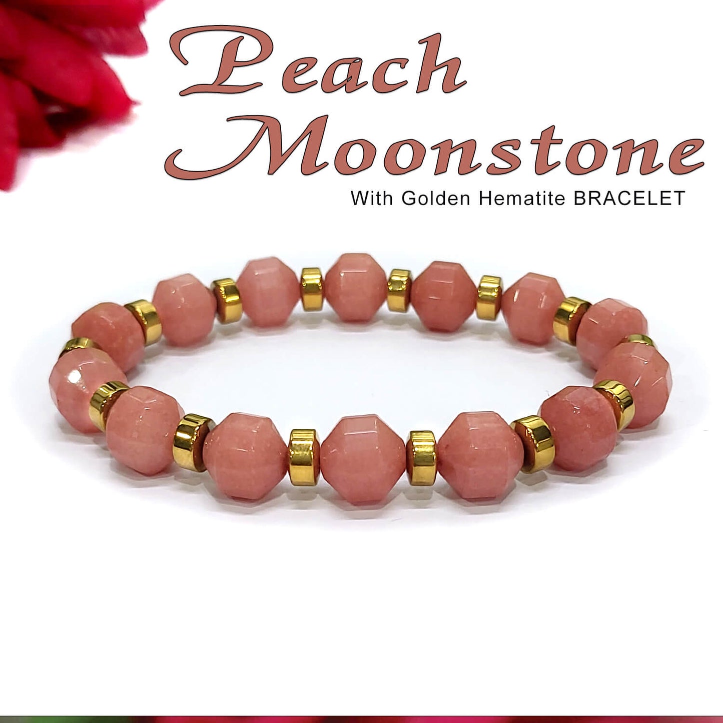Diamond Cut Peach Moonstone With Golden Hematite Natural Stone Bracelet