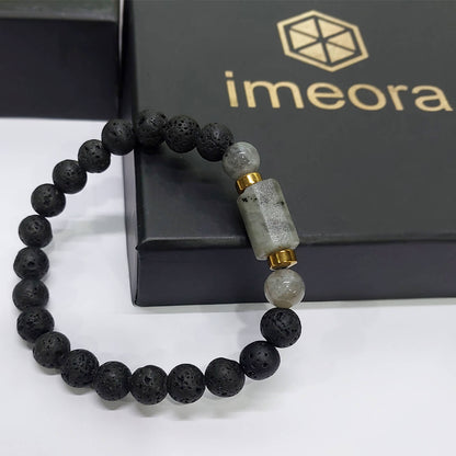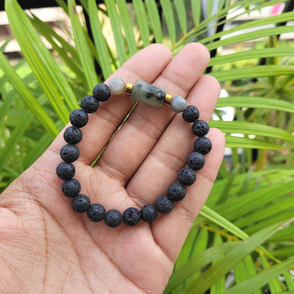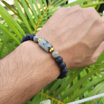 Premium Labradorite Matte Tumble Bracelet With Lava Stone And Golden Hematite