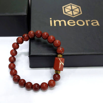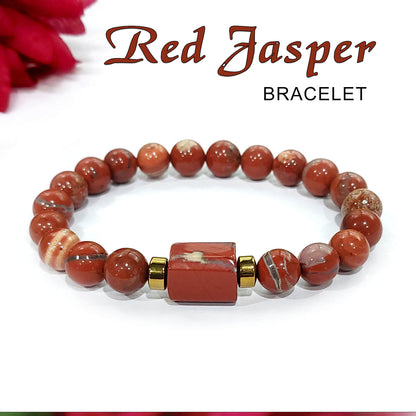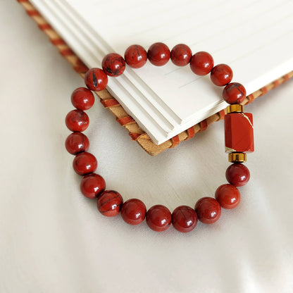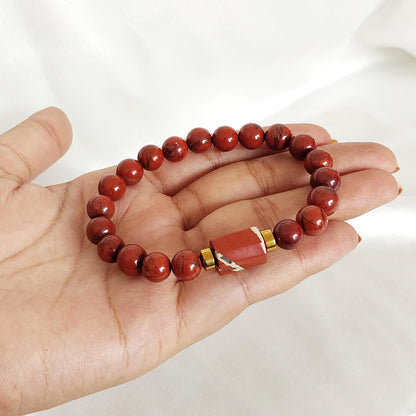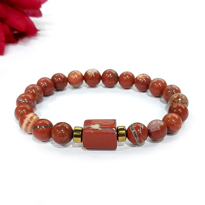 Red Jasper Tumble Natural Stone Bracelet With Golden Hematite