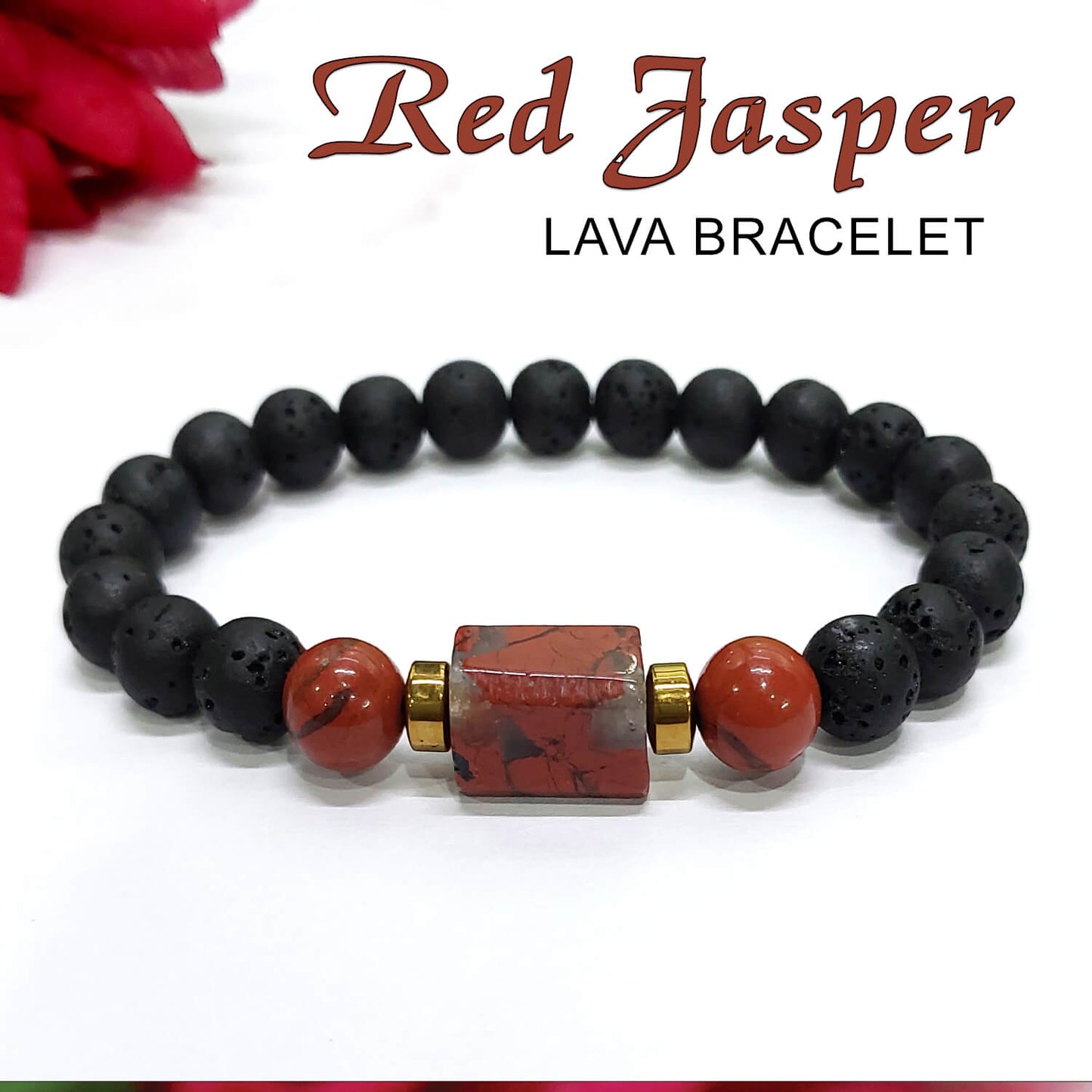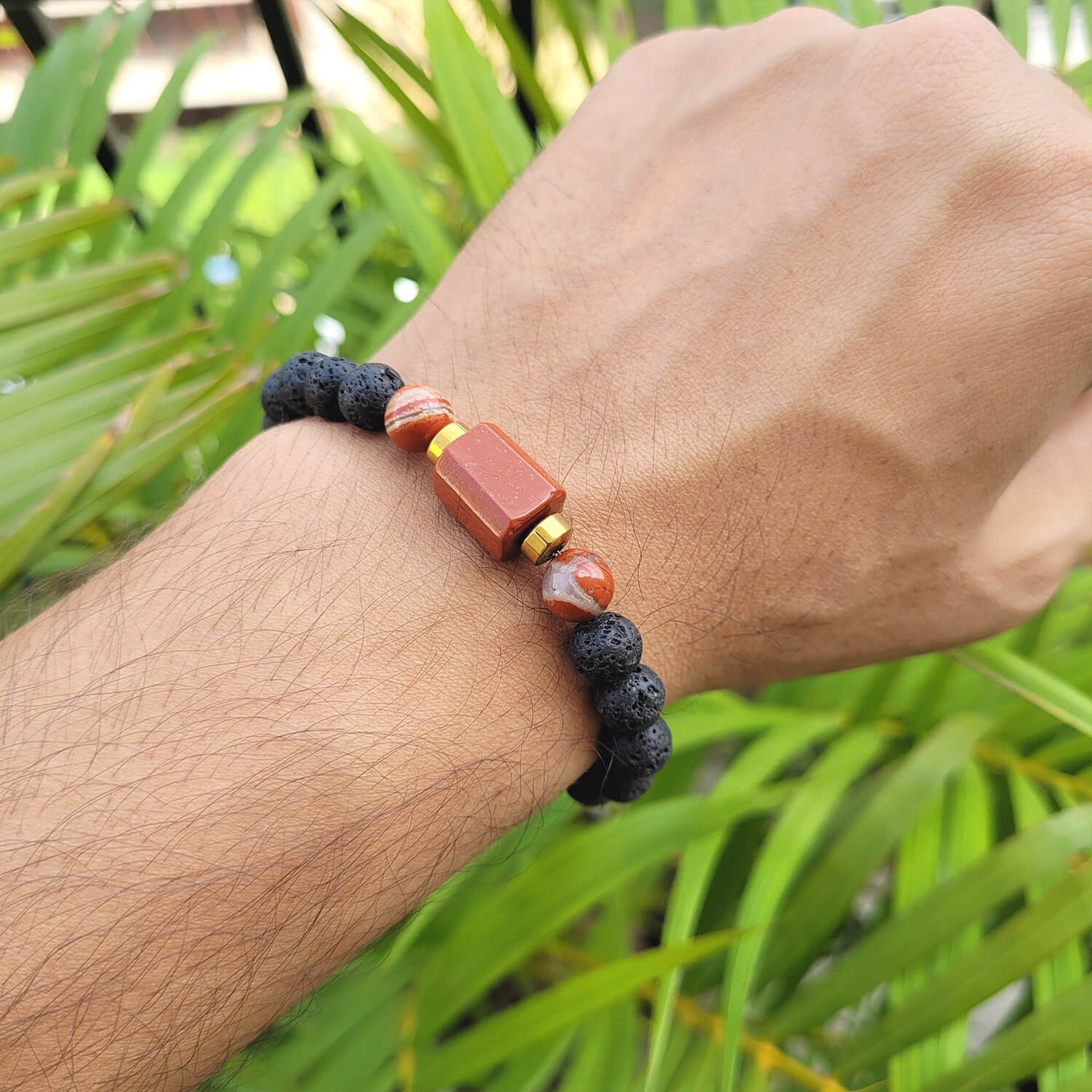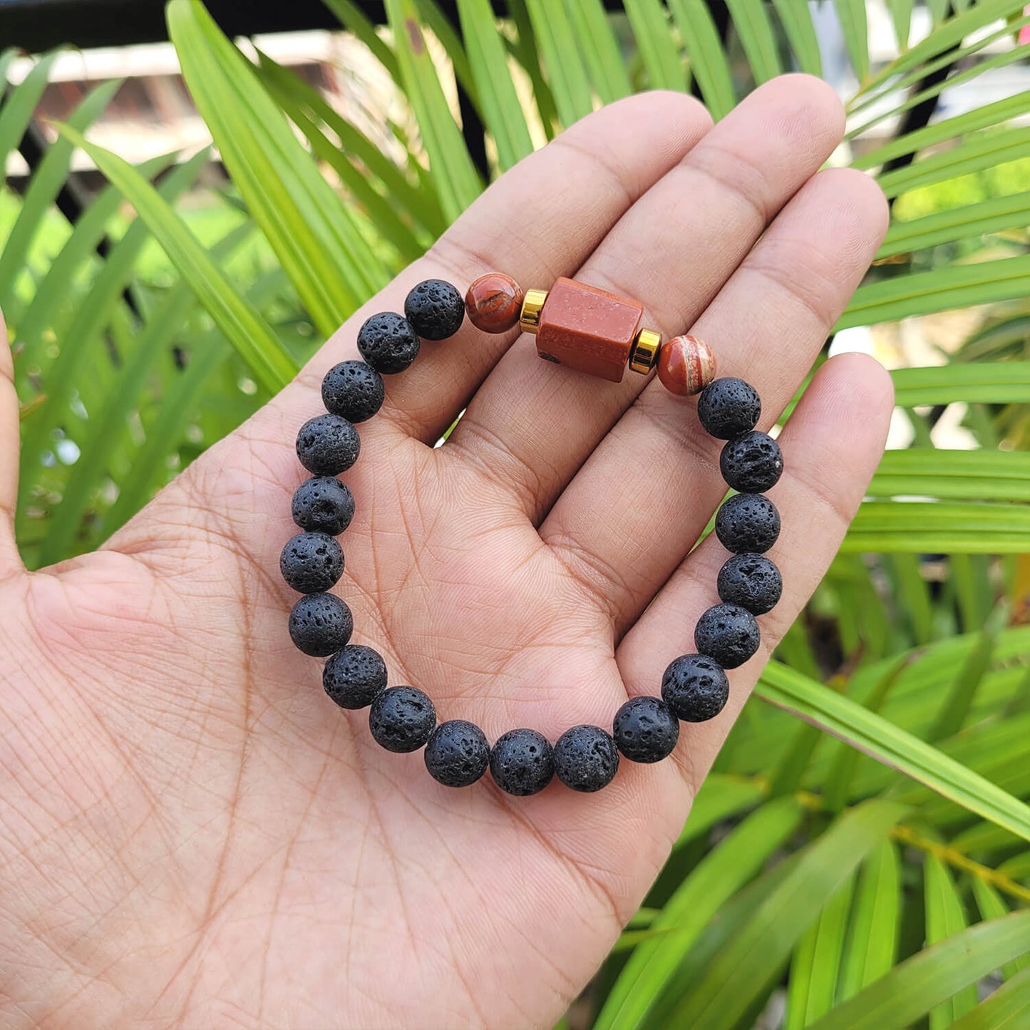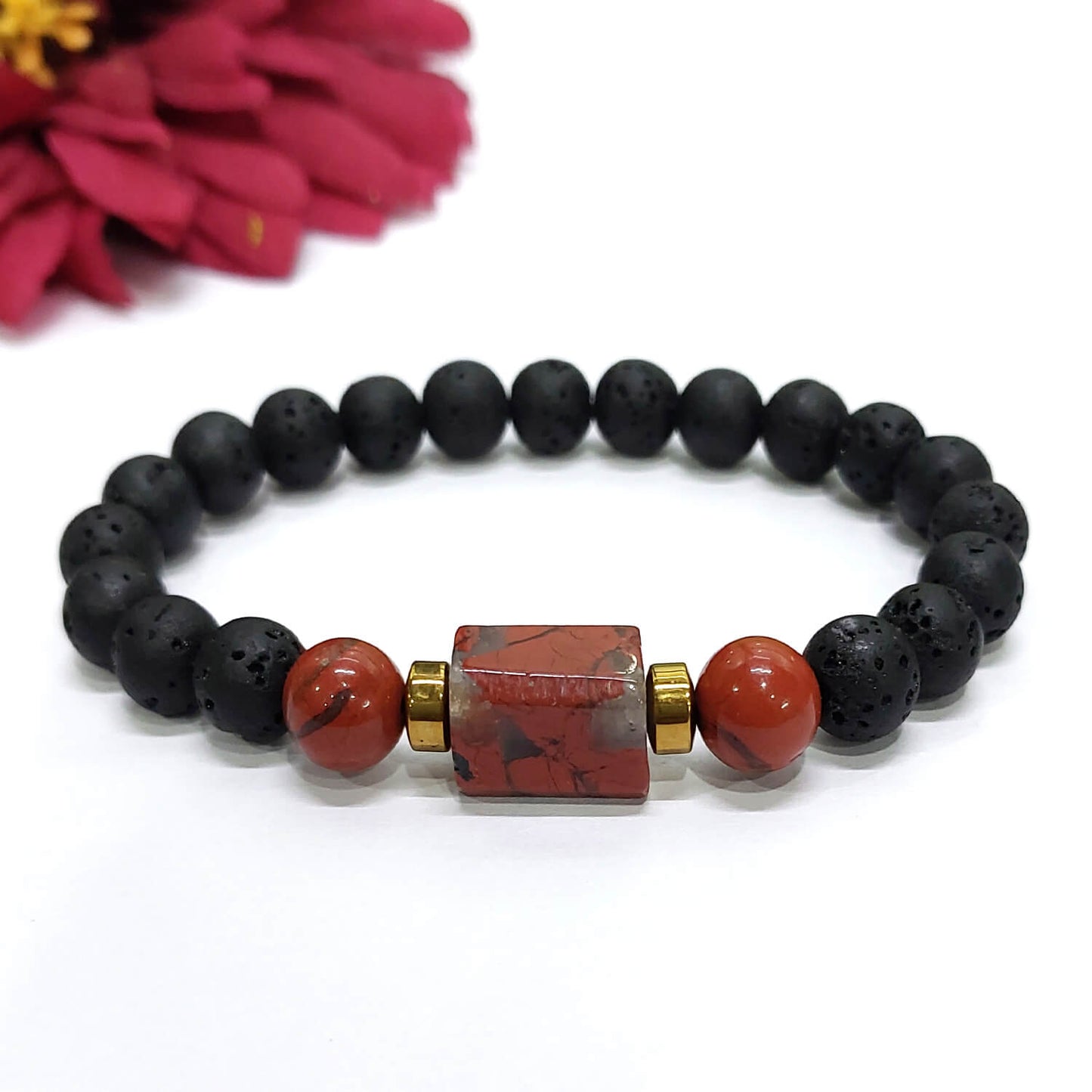 Red Jasper Tumble Bracelet With Lava Stone And Golden Hematite