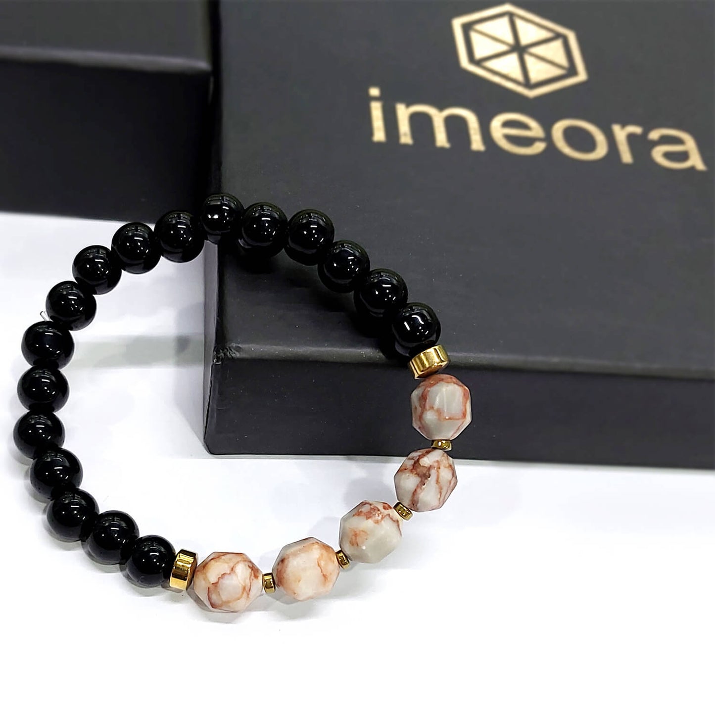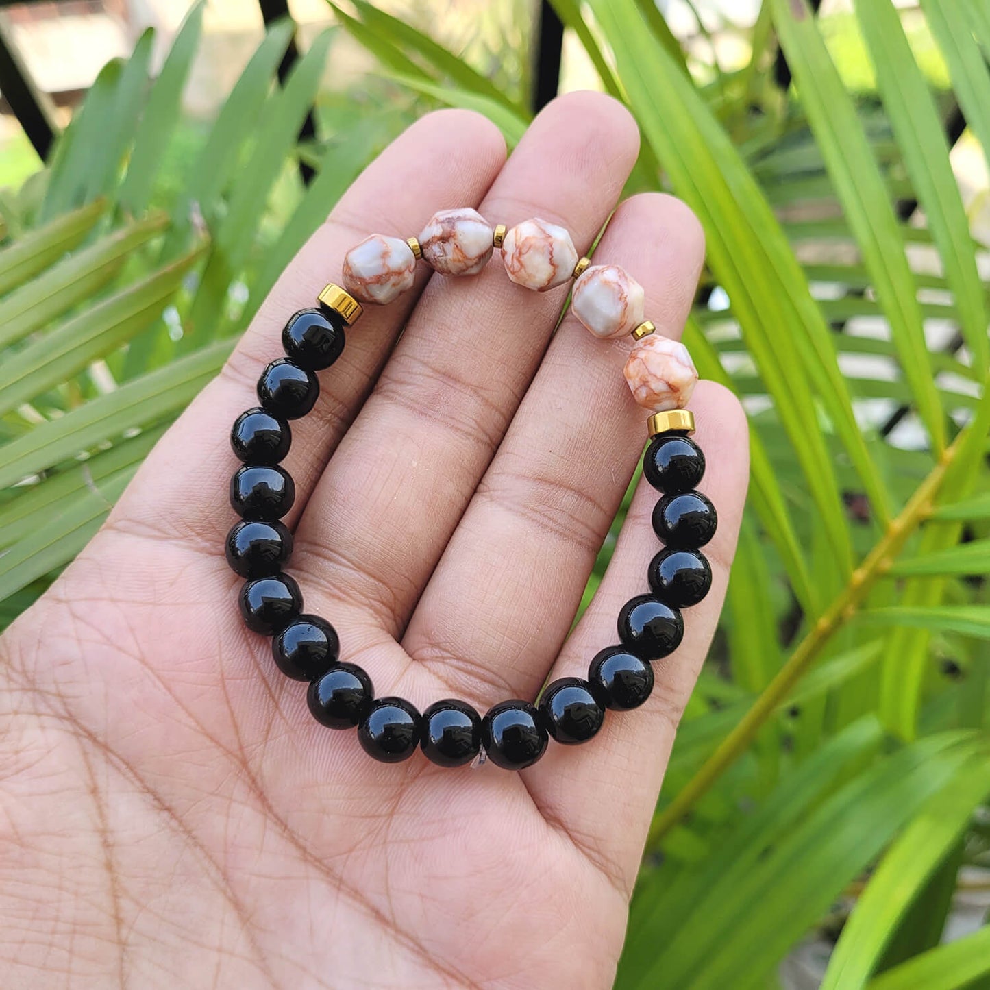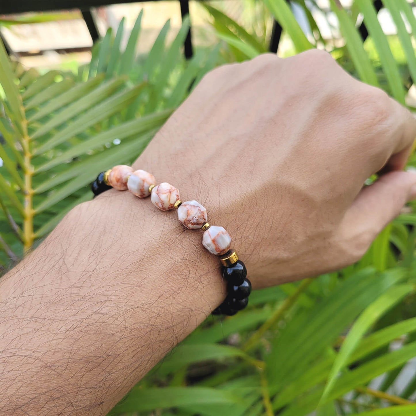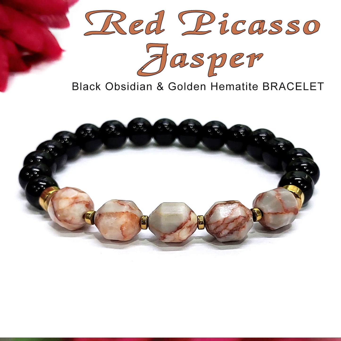 Diamond Cut Red Picasso Jasper With Black Obsidian And Golden Hematite Bracelet