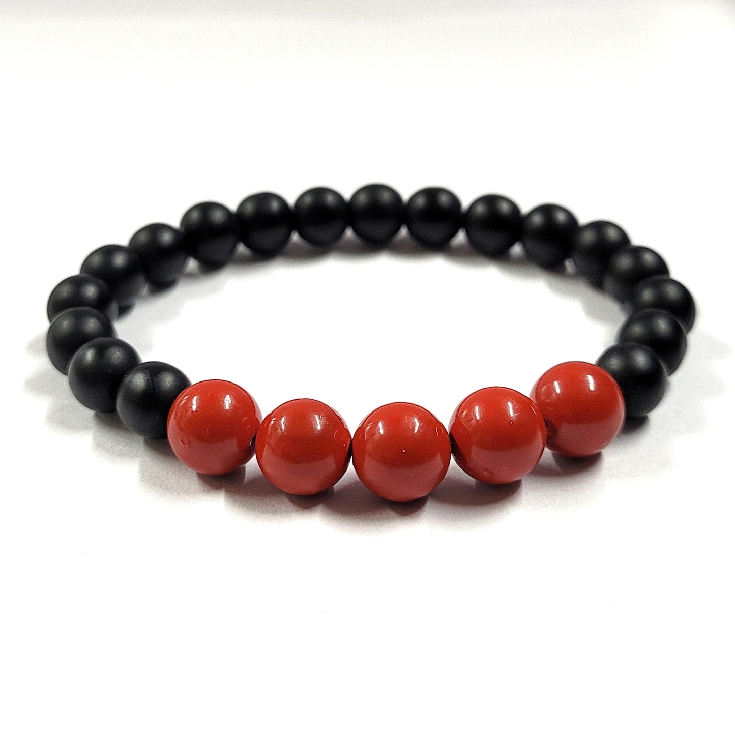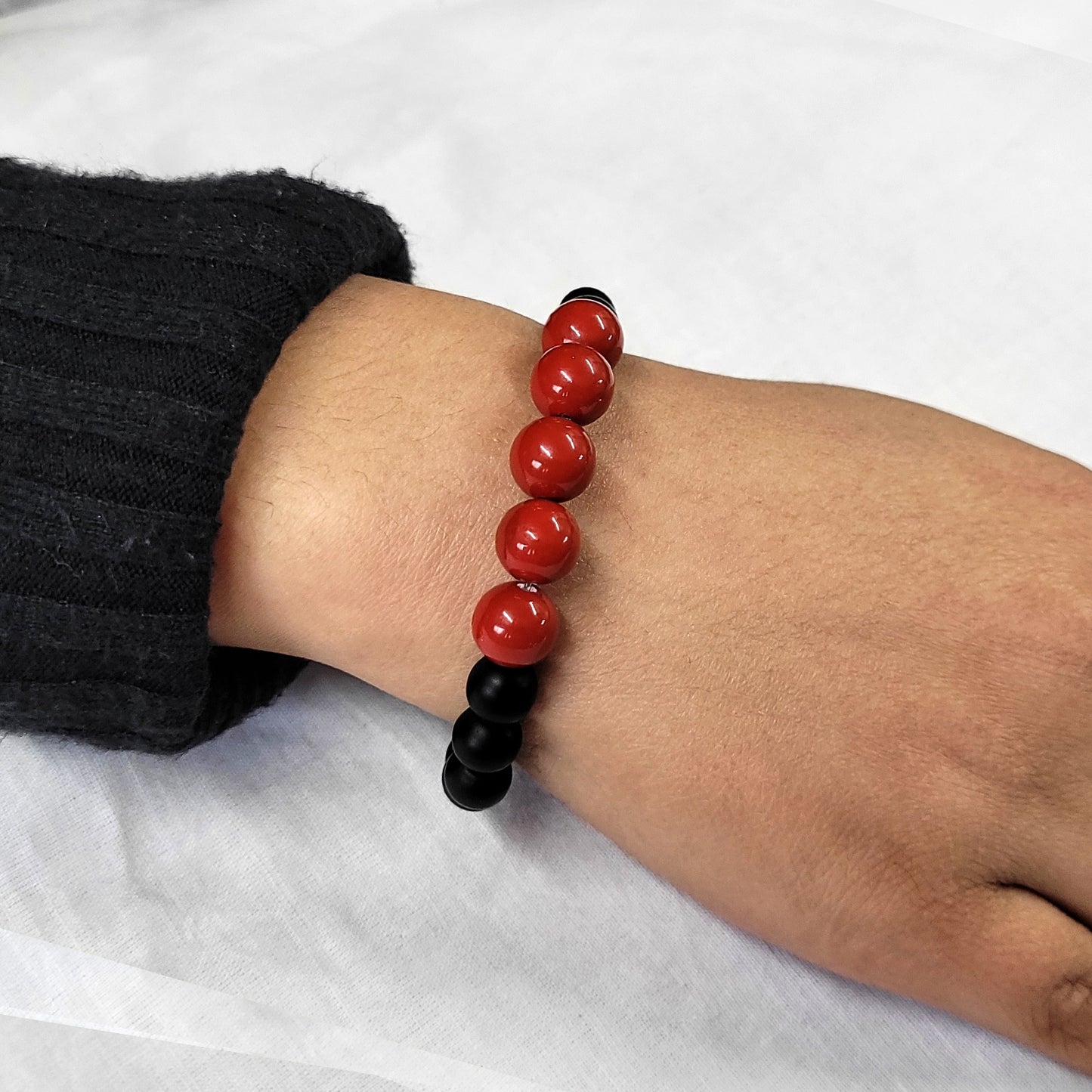 Red Shell Pearls 10mm Bracelet With 8mm Black Beads