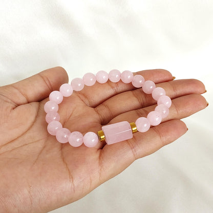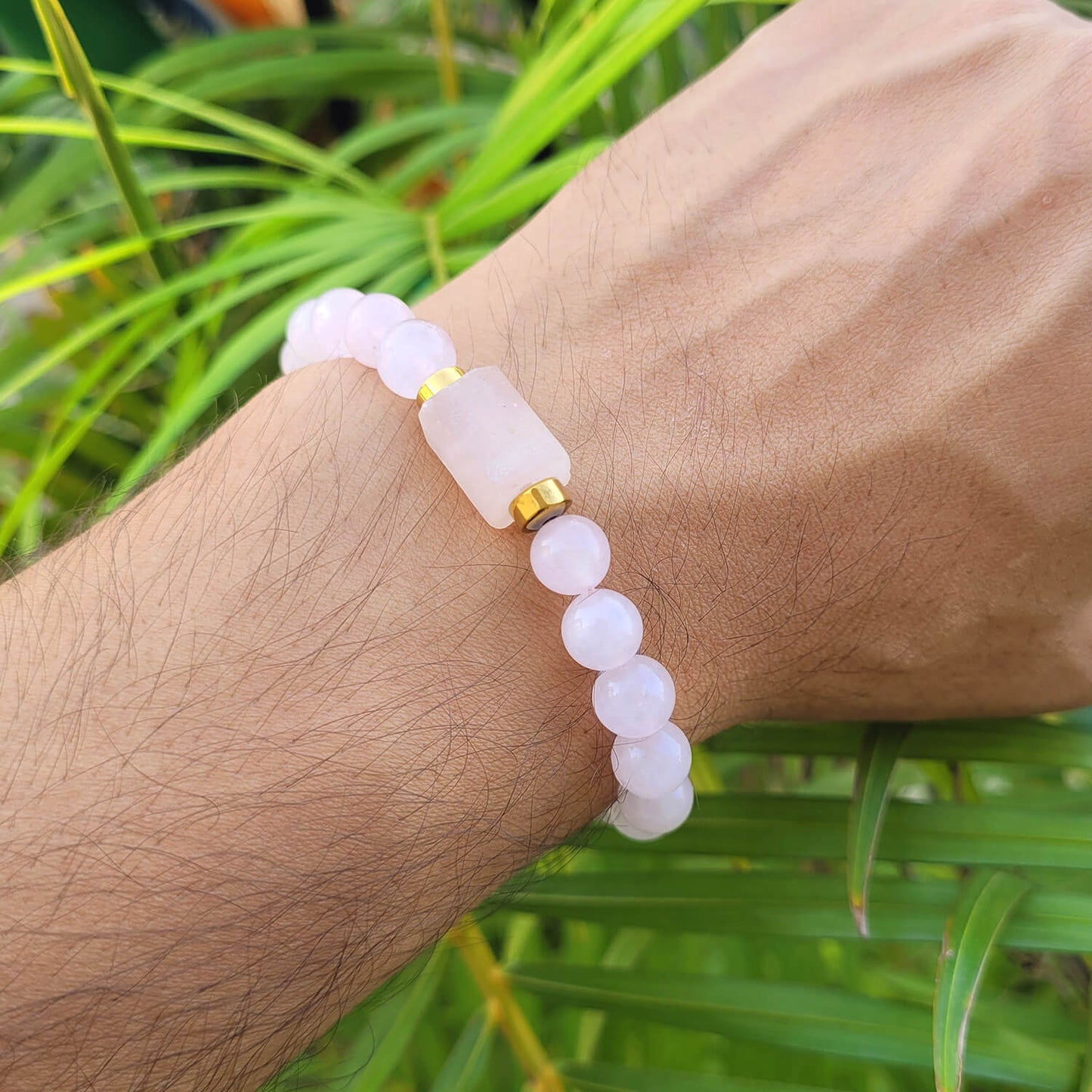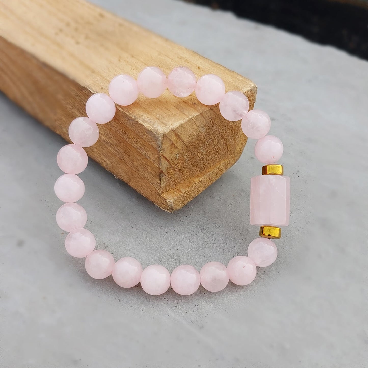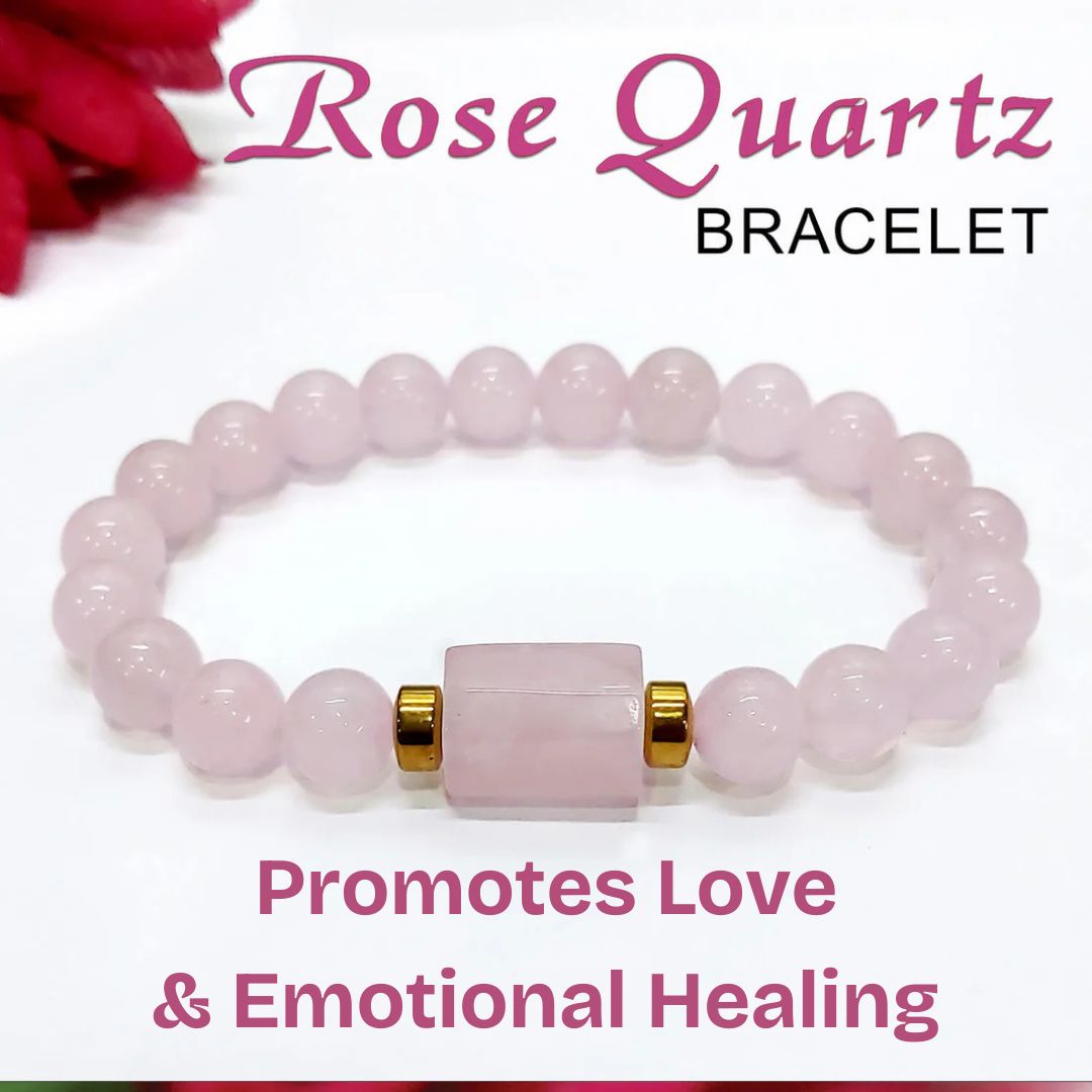 Rose quartz bracelets are believed to have powerful energetic properties that promote love, healing, emotional well-being, and self-confidence. They are often worn as a symbol of love and can help attract love, heal emotional wounds, encourage inner peace, and enhance self-confidence.