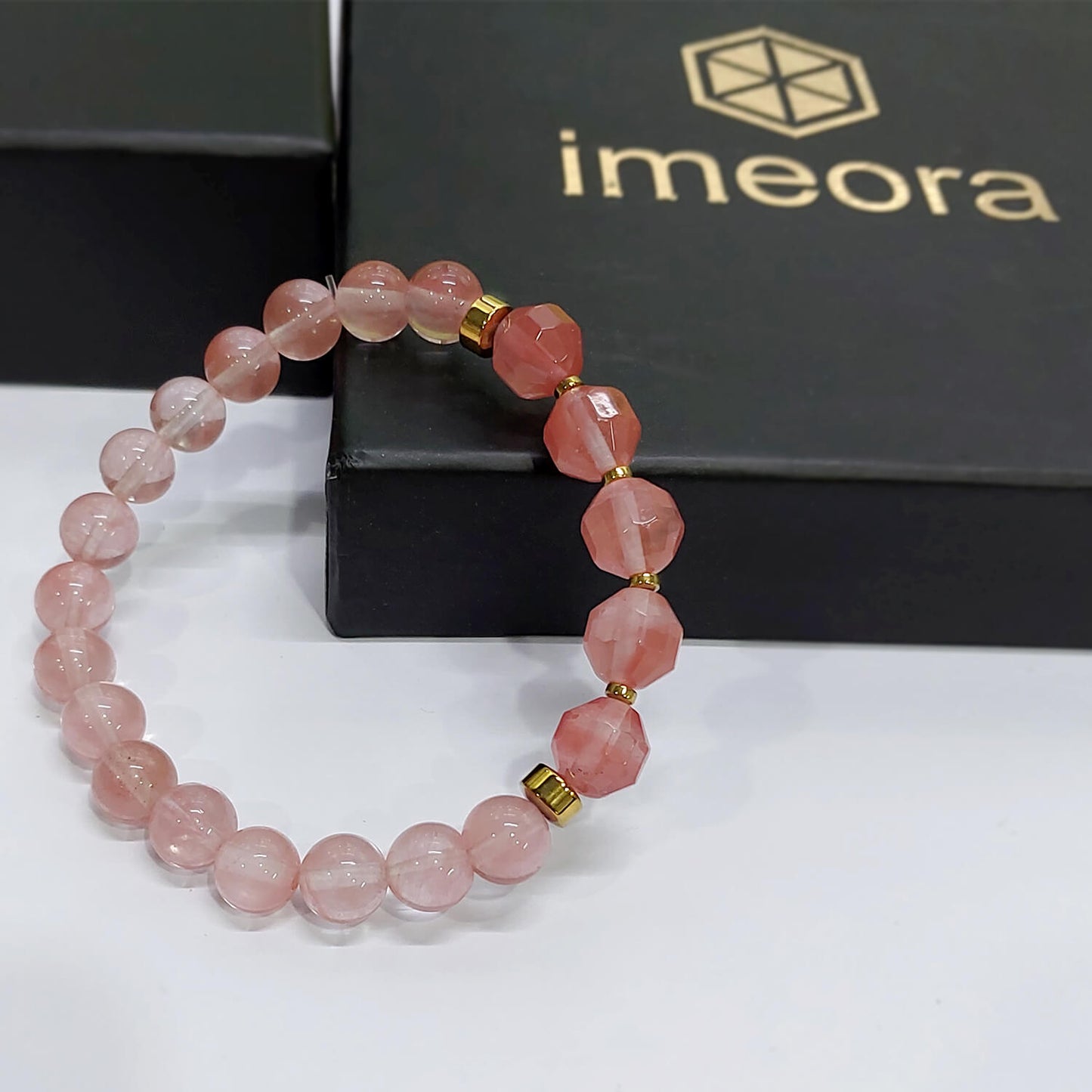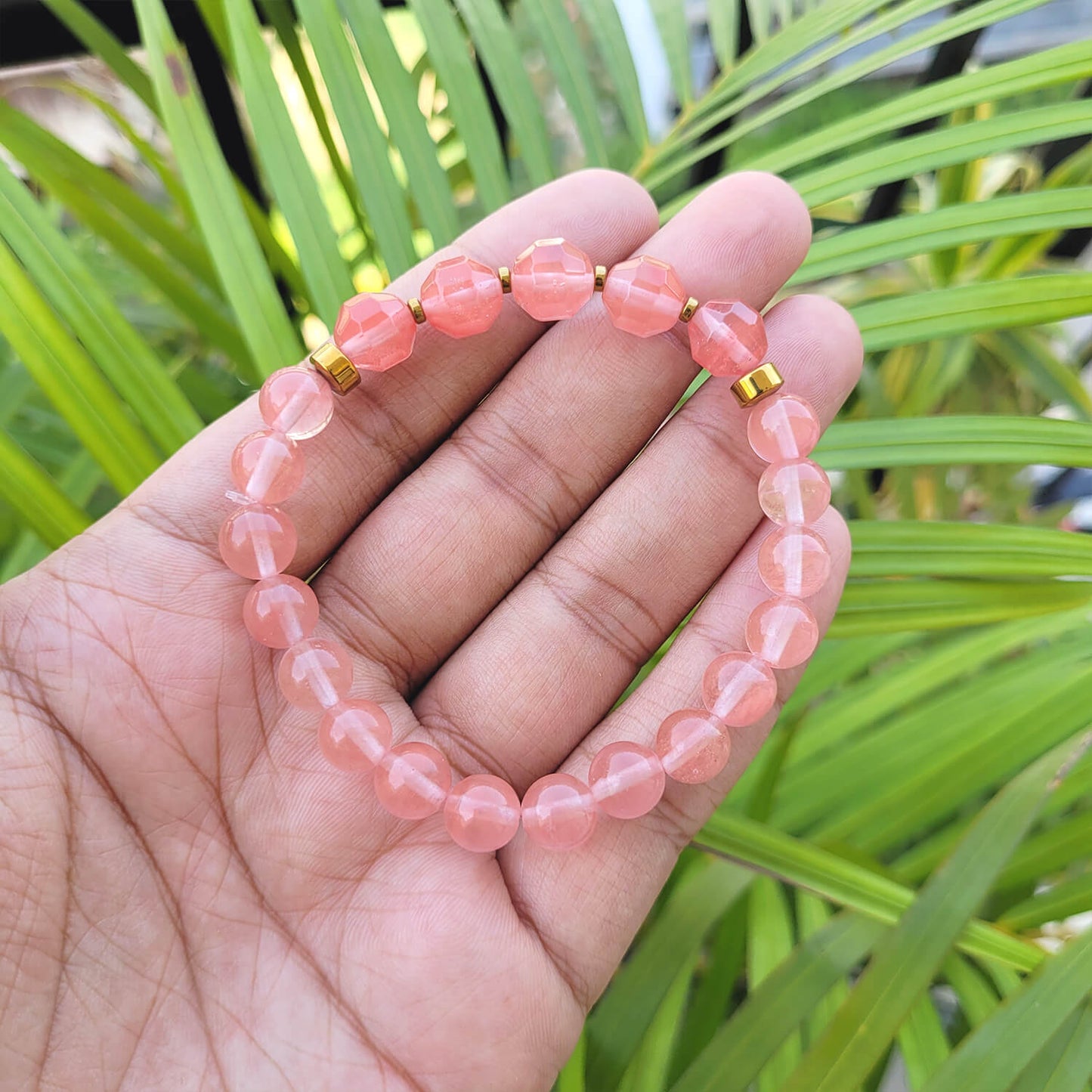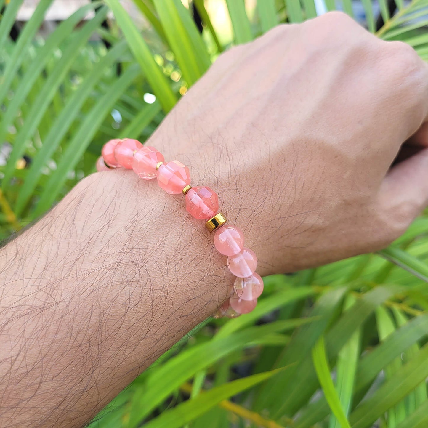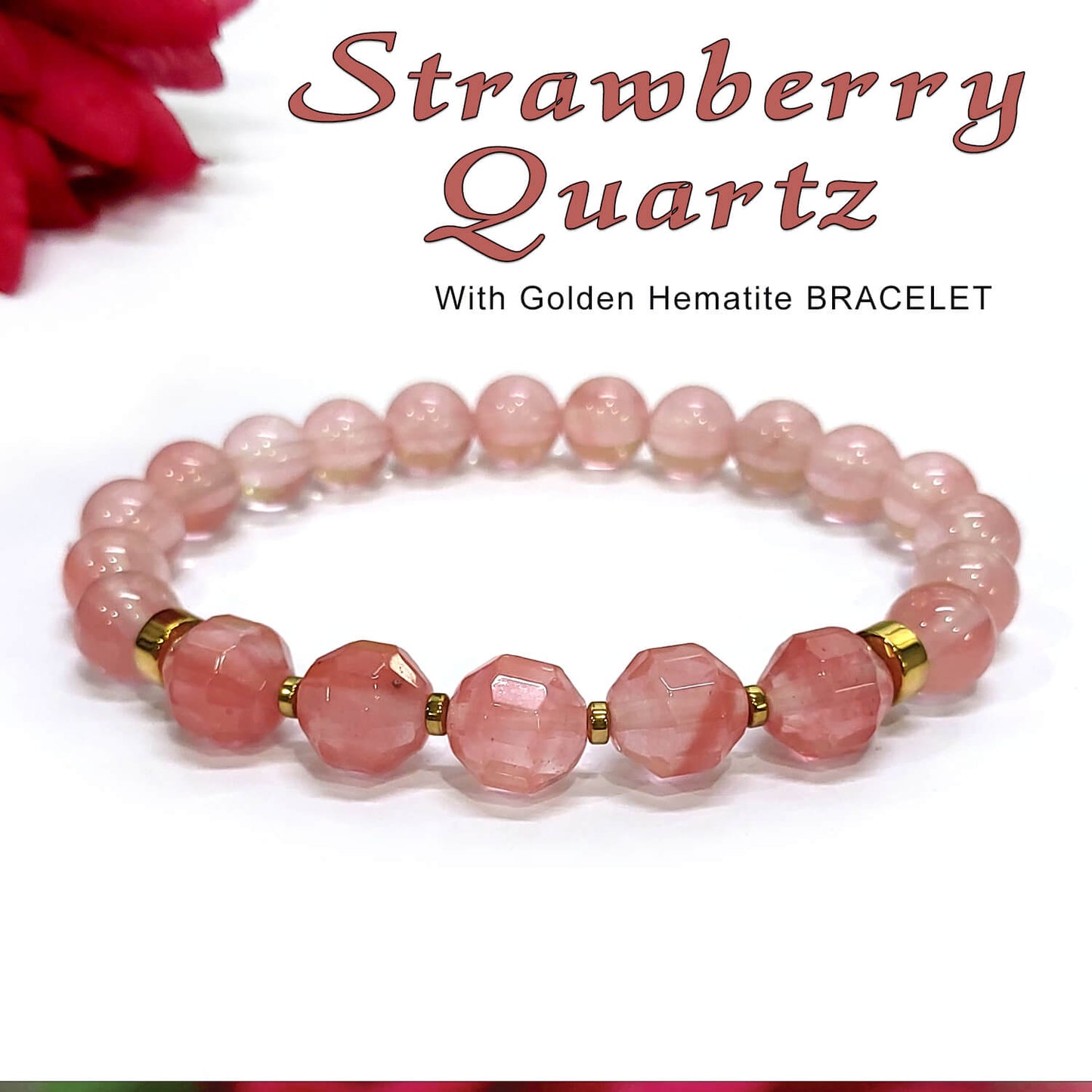 Diamond Cut Strawberry Quartz With Golden Hematite Natural Stone Bracelet