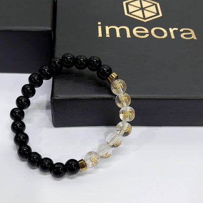 Swastik Black Obsidian With Onyx And Golden Hematite Bracelet