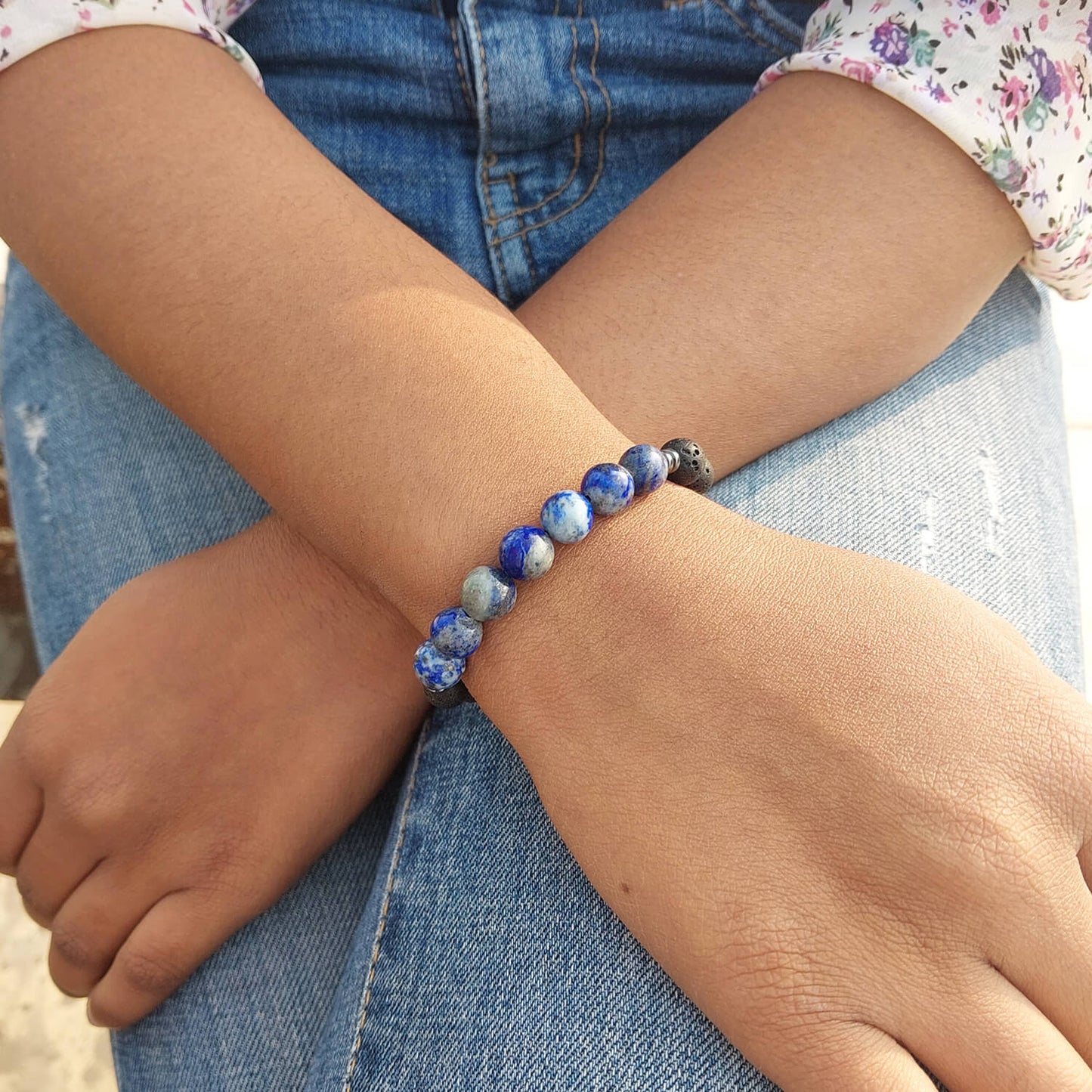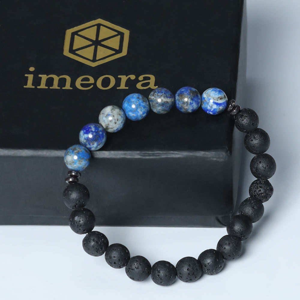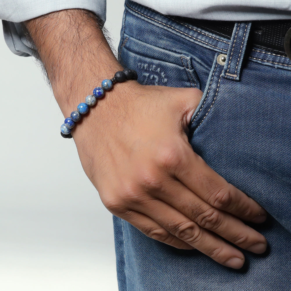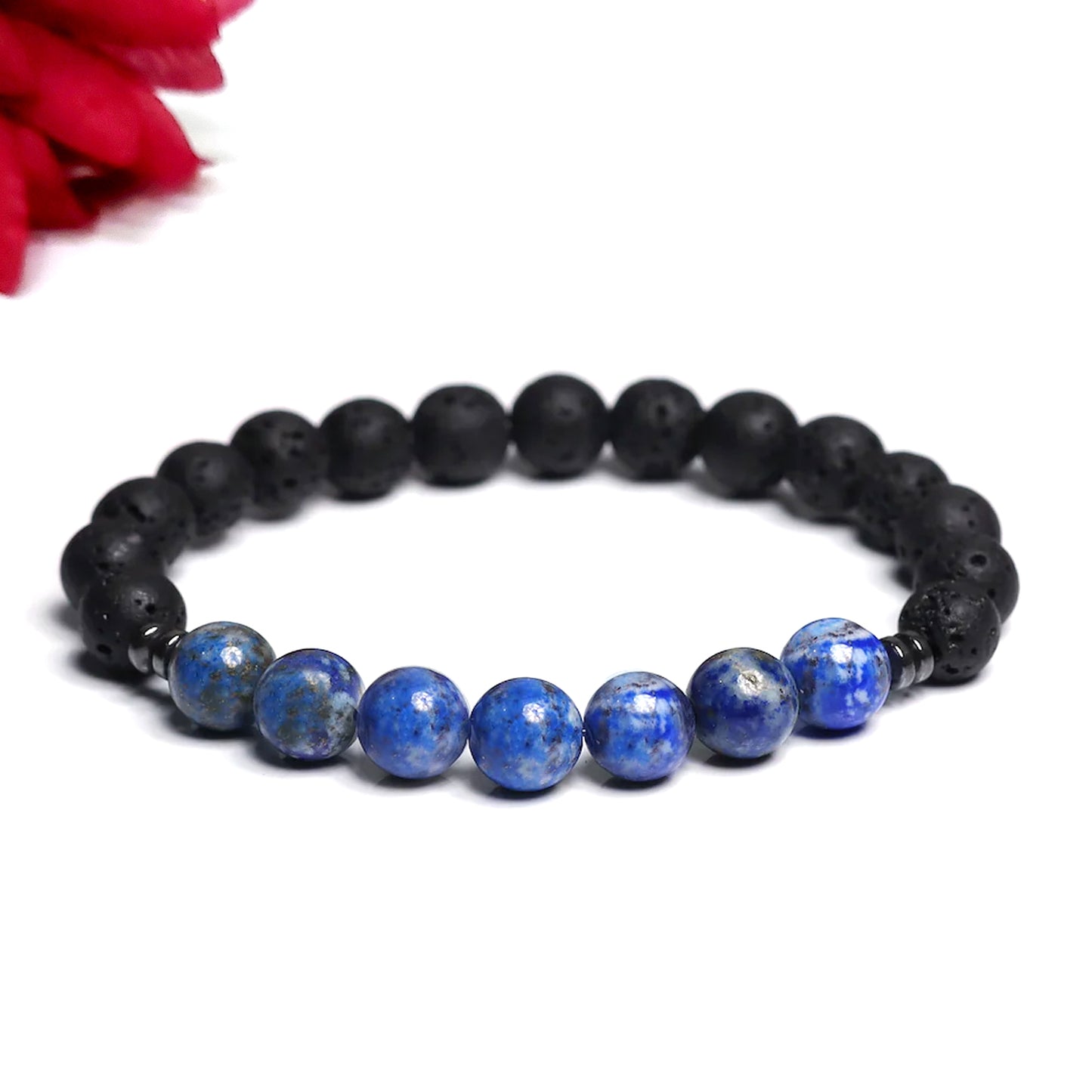 Certified Lapis Lazuli 8mm Bracelet With Lava Stone